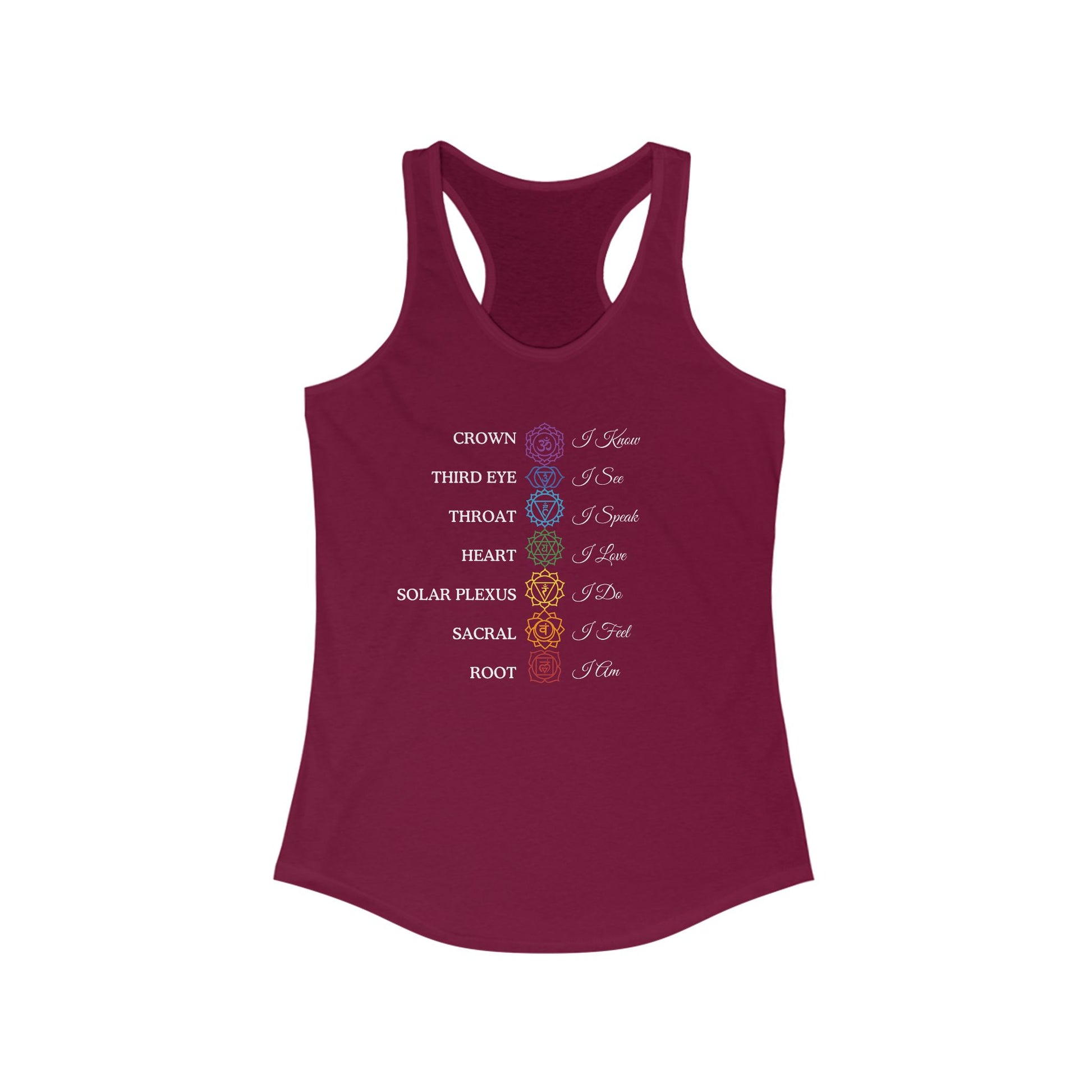 Bring mindfulness and balance into your routine with our Chakra Affirmations Racerback Tank, designed for yogis, fitness lovers, and spiritual seekers. Featuring a vertical design of seven chakra symbols paired with empowering affirmations like “I Am,” “I Feel,” and “I Know,” this tank keeps your energy aligned and your look stylish. Whether you’re practicing yoga, meditating, or hitting the gym, this tank top is your go-to for comfort and inspiration.