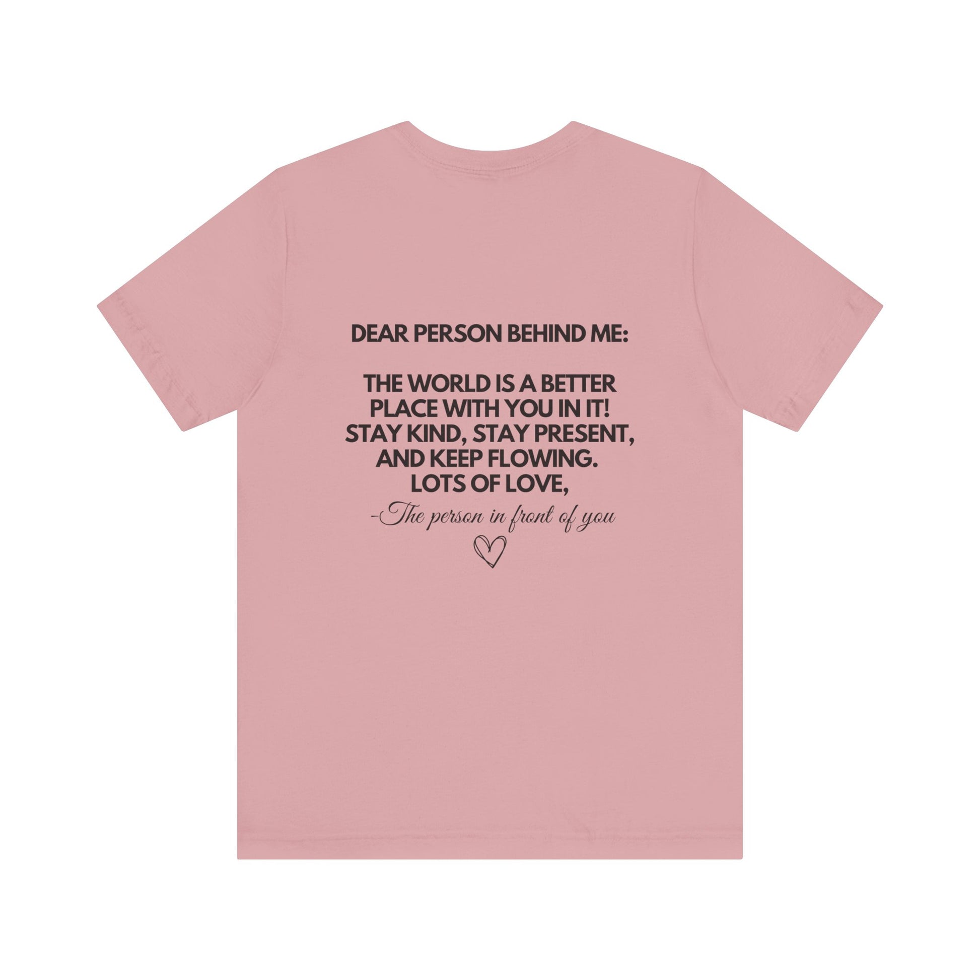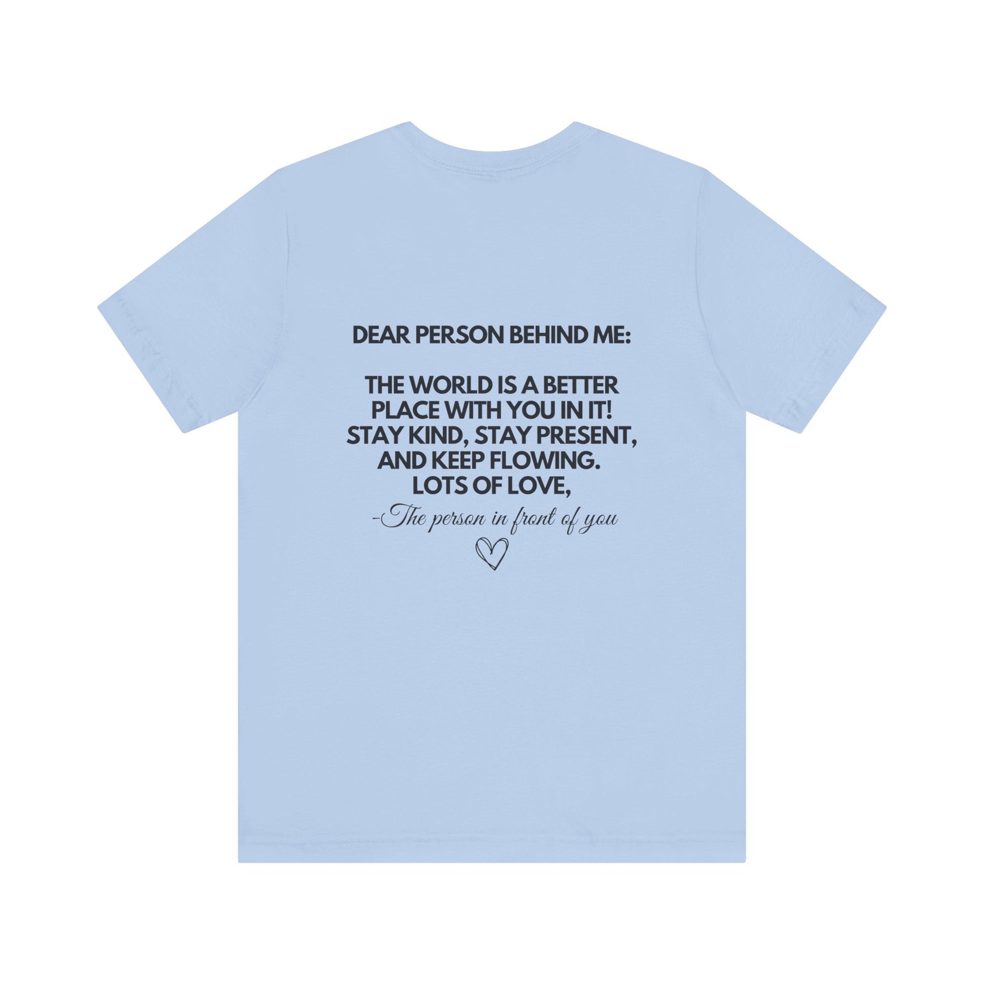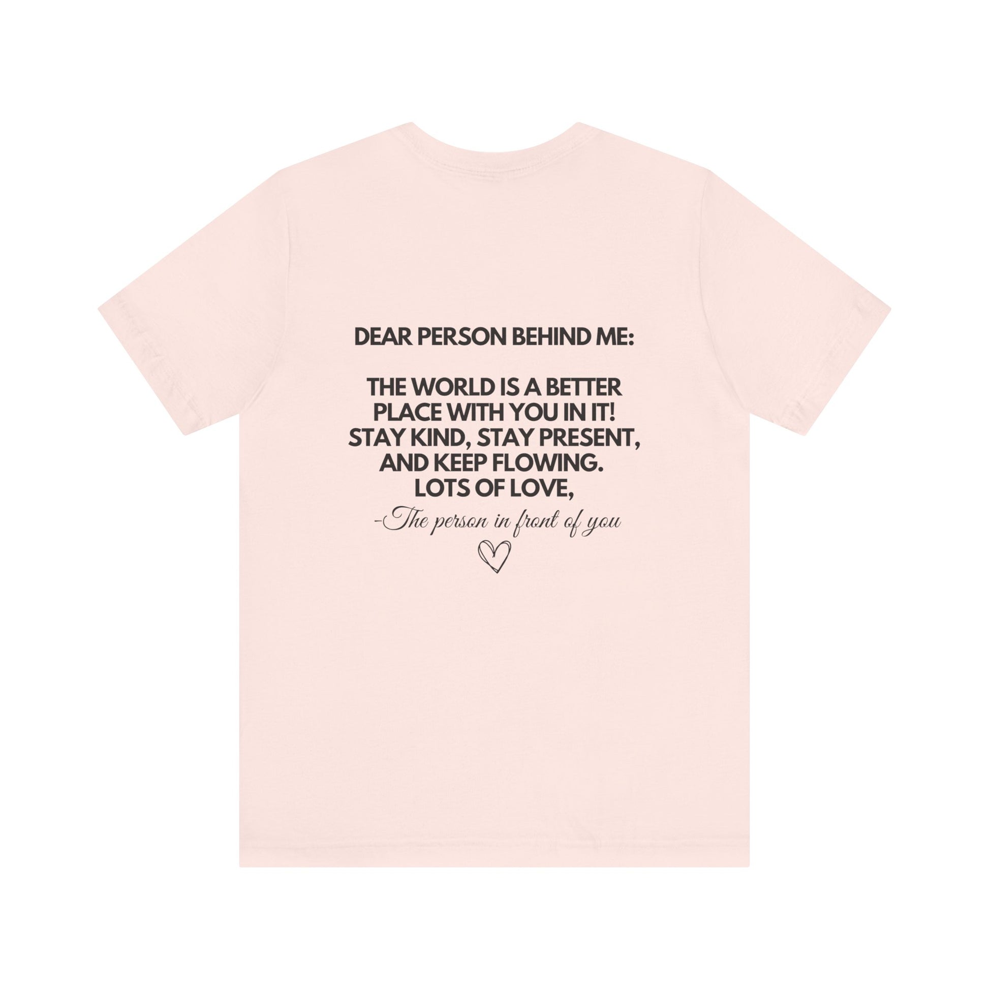 Sometimes, the simplest words make the biggest impact. Our Dear Person Behind Me T-shirt delivers a heartfelt message to anyone who crosses your path: “The world is a better place with you in it!” Lightweight, comfortable, and packed with positivity, this tee is your go-to for spreading love and good vibes everywhere you go. 🌟