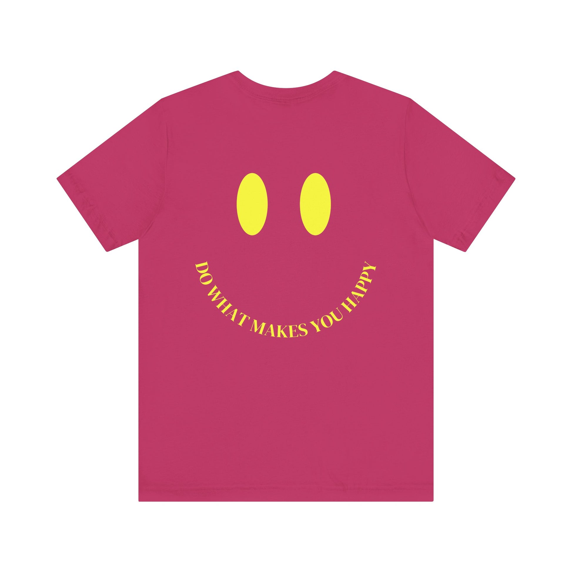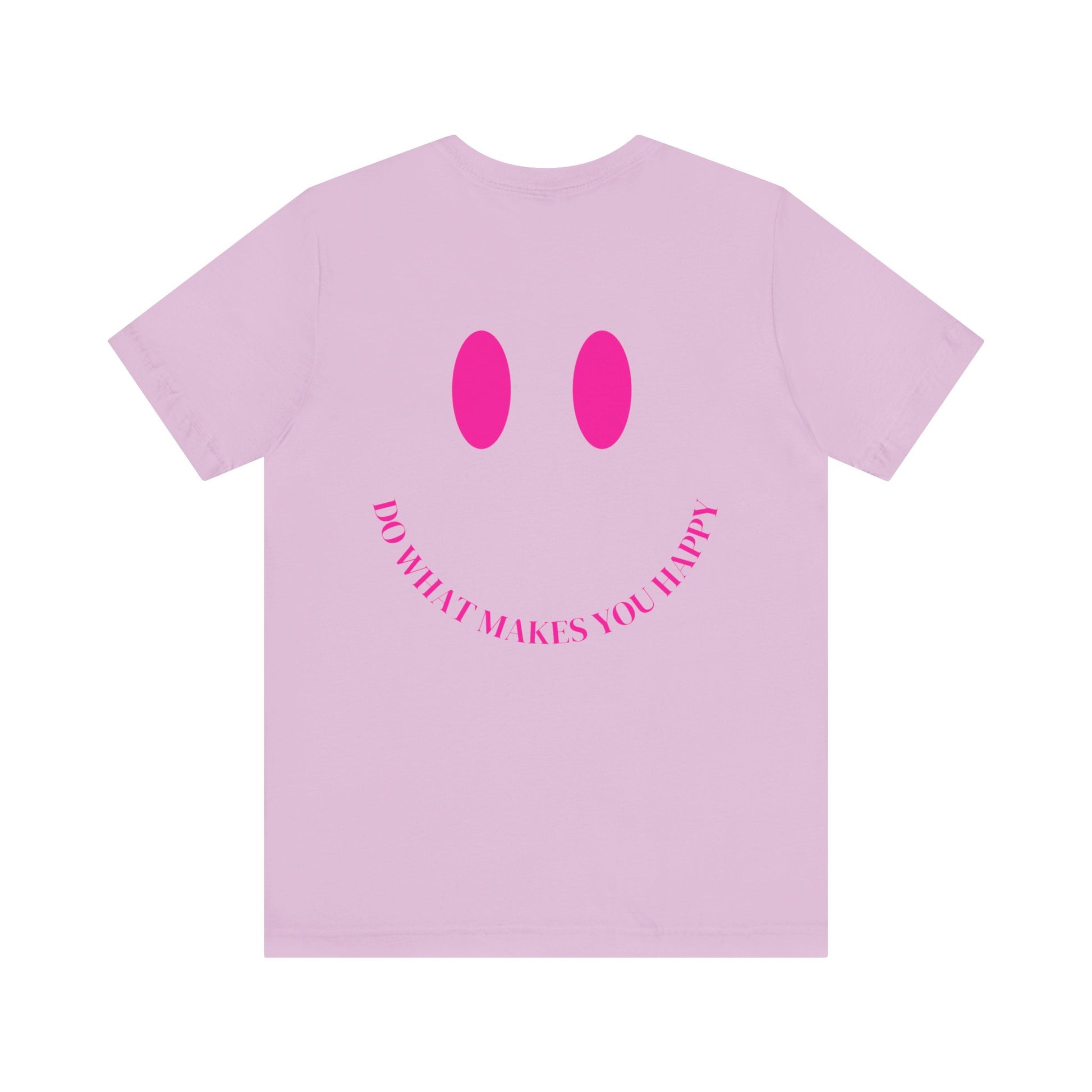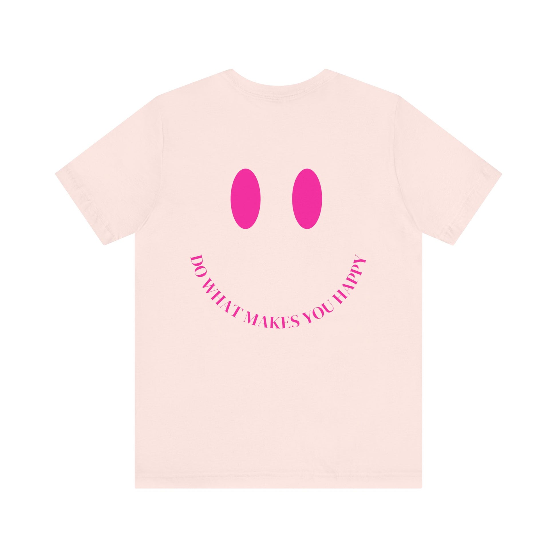 Turn heads and spread joy with our Do What Makes You Happy t-shirt. Featuring a playful oversized smiley face on the back with the uplifting phrase “Do What Makes You Happy” curved into its smile, this design is a cheerful reminder to embrace what lights you up. Comfortable and versatile, this tee is perfect for casual days or making a statement wherever you go. Please Note: This design is featured only on the back of the item. The front is blank, making it perfect for a clean, minimalist look from the front and a fun, bold statement from the back! 🌼😊
