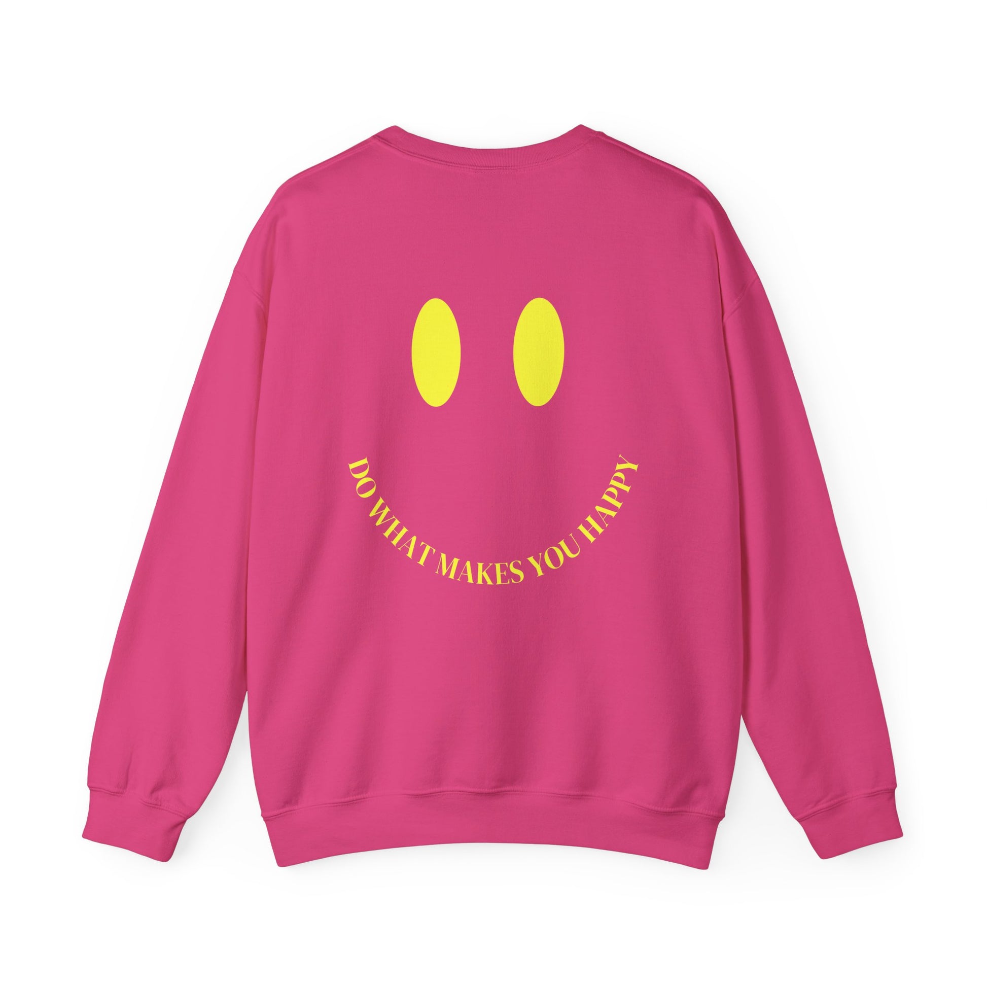 Stay warm and radiate positivity with our Do What Makes You Happy crewneck sweatshirt. Featuring a bold oversized smiley face on the back with the phrase “Do What Makes You Happy” curved into its iconic smile, this sweatshirt combines comfort and inspiration in one chic design. Whether you’re lounging, heading out, or making a statement, this crewneck is the ultimate feel-good piece for your wardrobe. Please Note: This design is featured only on the back of the item. The front is blank, making it perfect for a clean, minimalist look from the front and a fun, bold statement from the back! 🌼😊