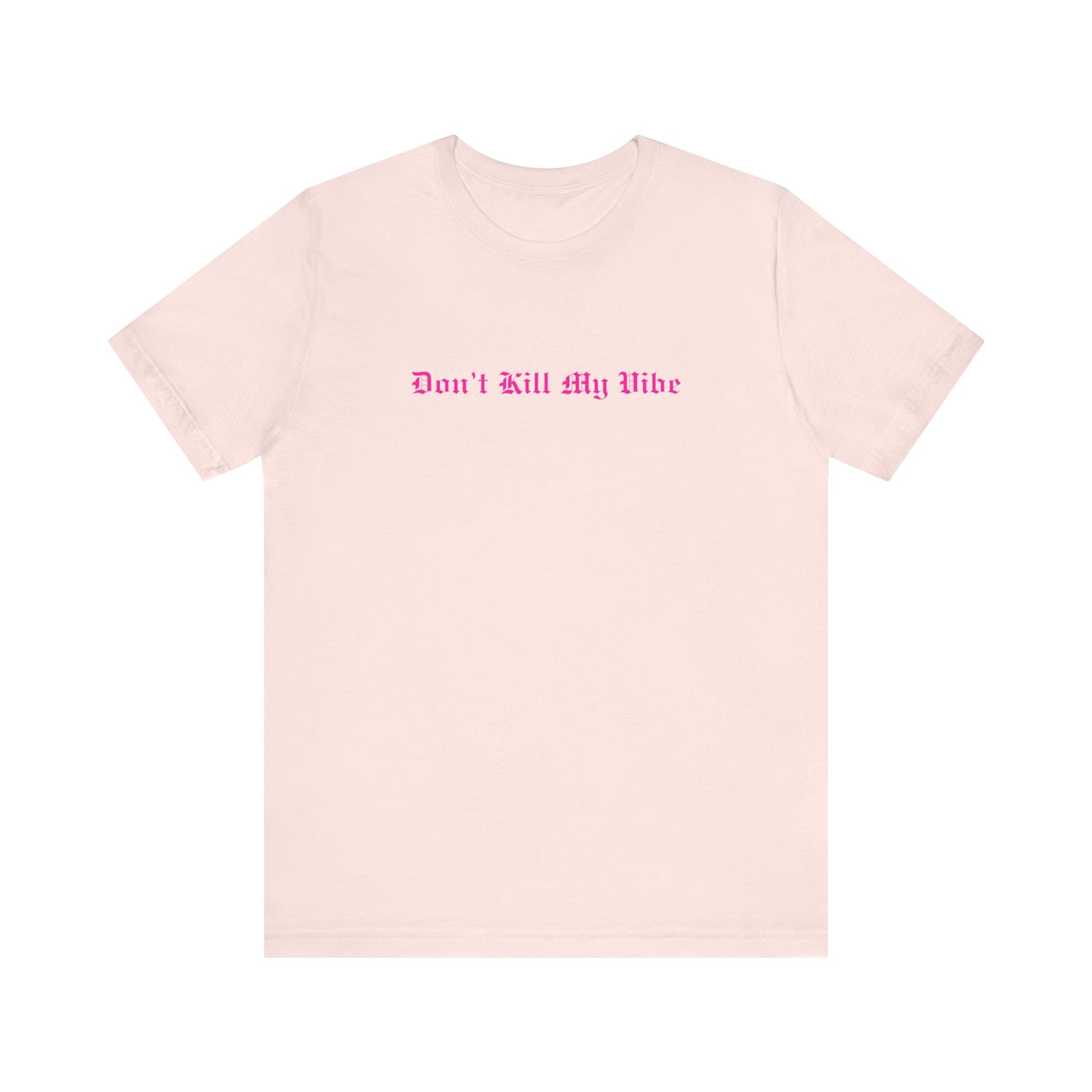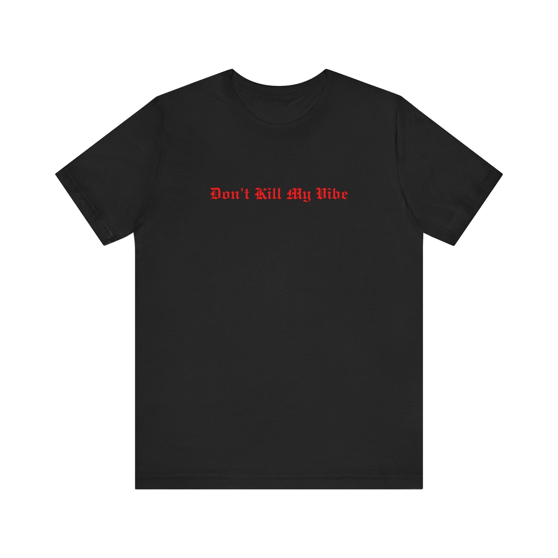 Keep your vibe untouchable with our Don’t Kill My Vibe T-shirt! Featuring bold gothic-inspired typography, this minimalist design sends a clear message: protect your energy at all costs. Lightweight, stylish, and oh-so-comfortable, this tee is perfect for anyone who values their peace and knows how to keep the good vibes flowing. 🌟