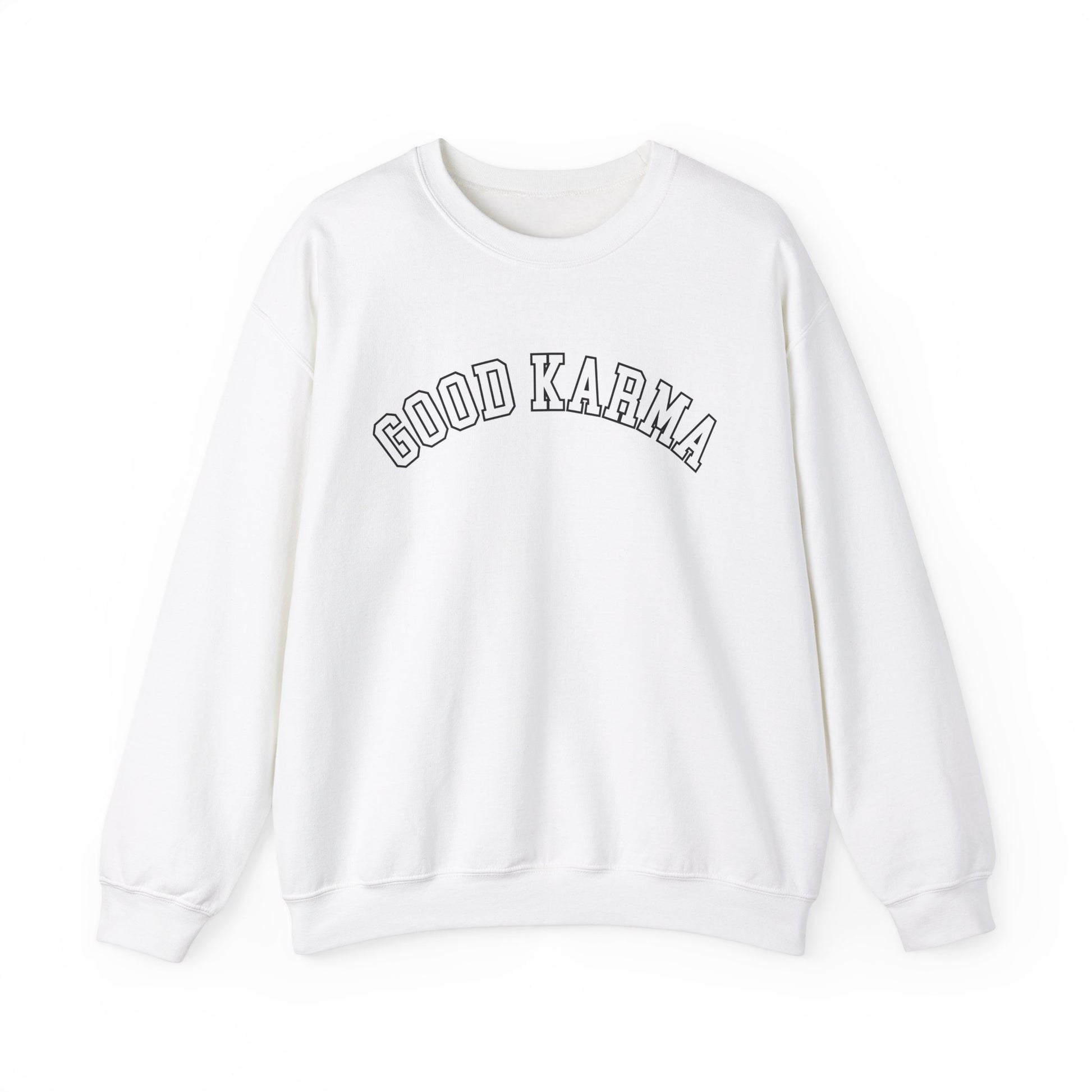 Wrap yourself in comfort and positivity with our Good Karma crewneck sweatshirt. Featuring a timeless arched "Good Karma" design, this sweatshirt is perfect for casual days, lounging at home, or layering up for cooler weather. With its clean and minimalist look, it’s a must-have for any wardrobe.