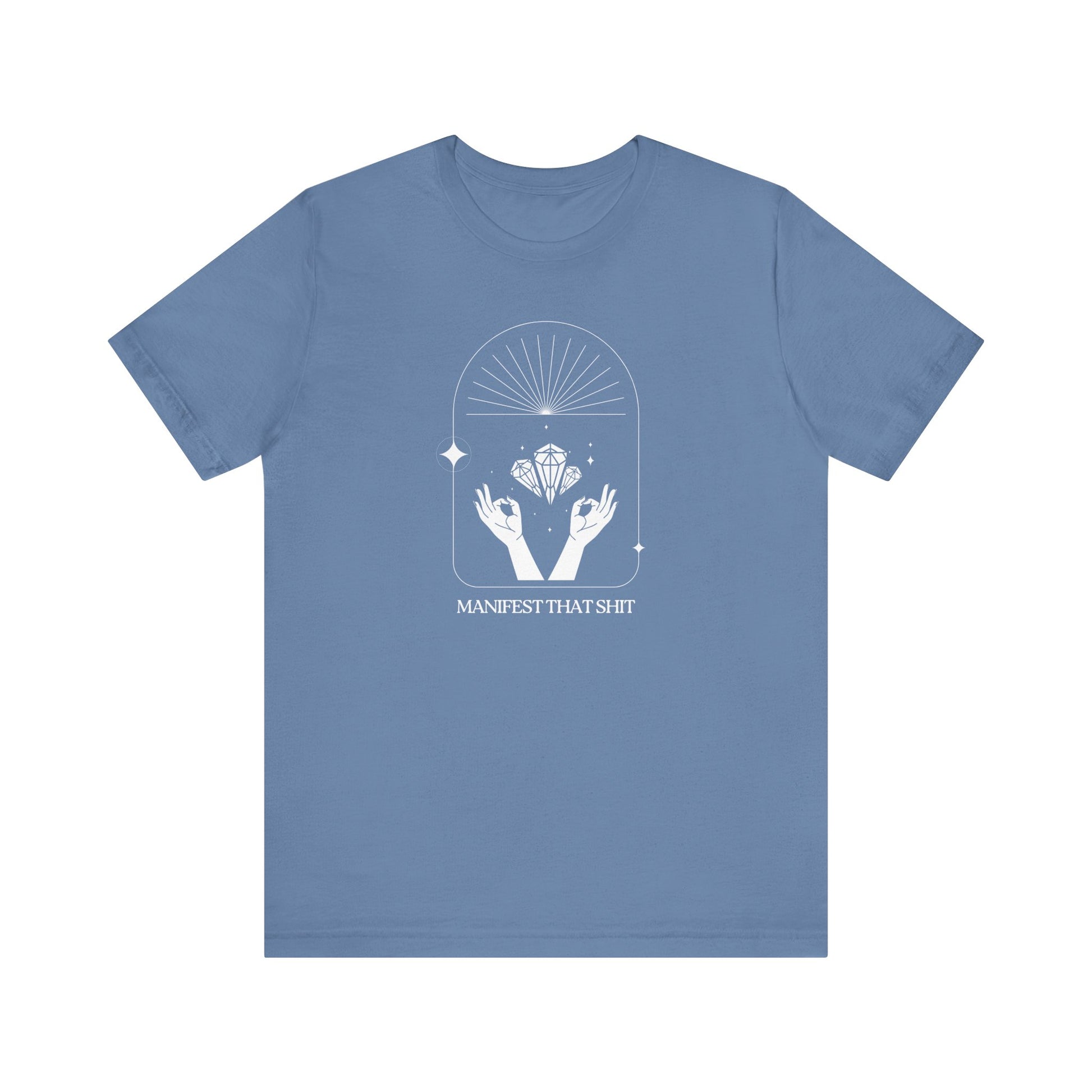 Step into your manifesting power with our Manifest That Sht* T-shirt! Featuring a sleek celestial design with glowing hands, a radiant crystal, and a sprinkle of cosmic magic, this tee is perfect for setting intentions and chasing your dreams in style. 🌙🌟