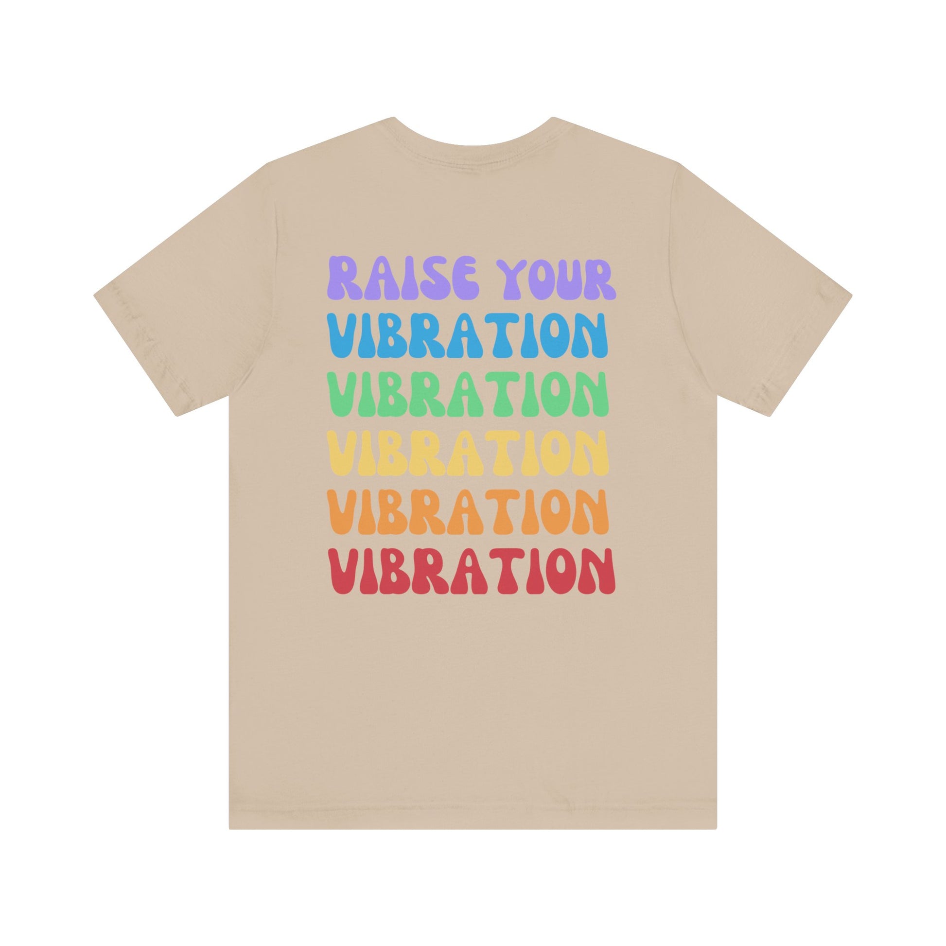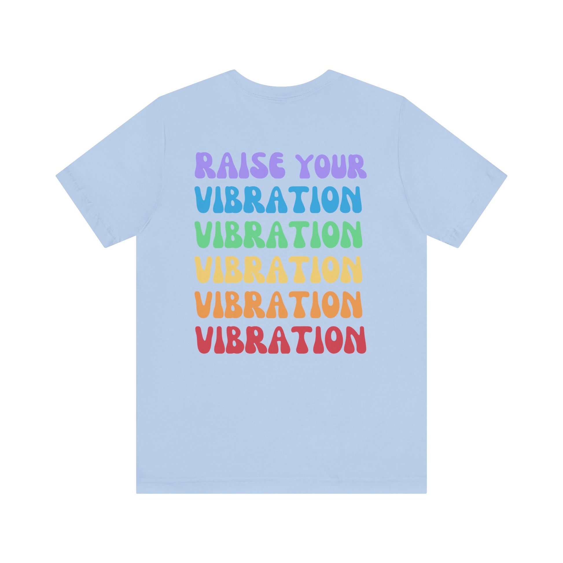 Elevate your energy and make a bold statement with our Raise Your Vibration t-shirt. Featuring a minimalist front design and an eye-catching rainbow gradient print on the back, this shirt reminds you—and everyone around you—to rise above and embrace positivity. Perfect for those who live with intention and love standing out with vibrant, empowering style.