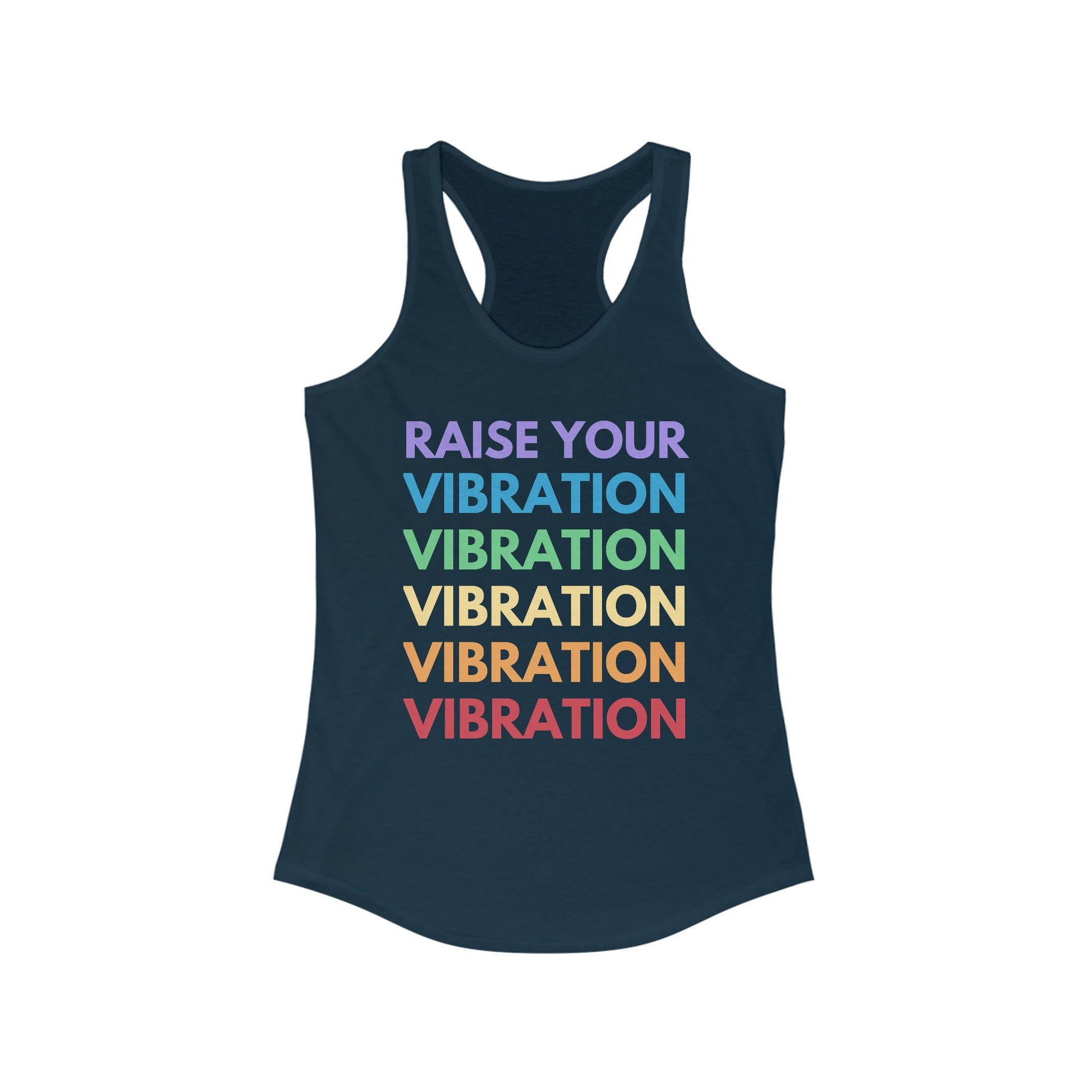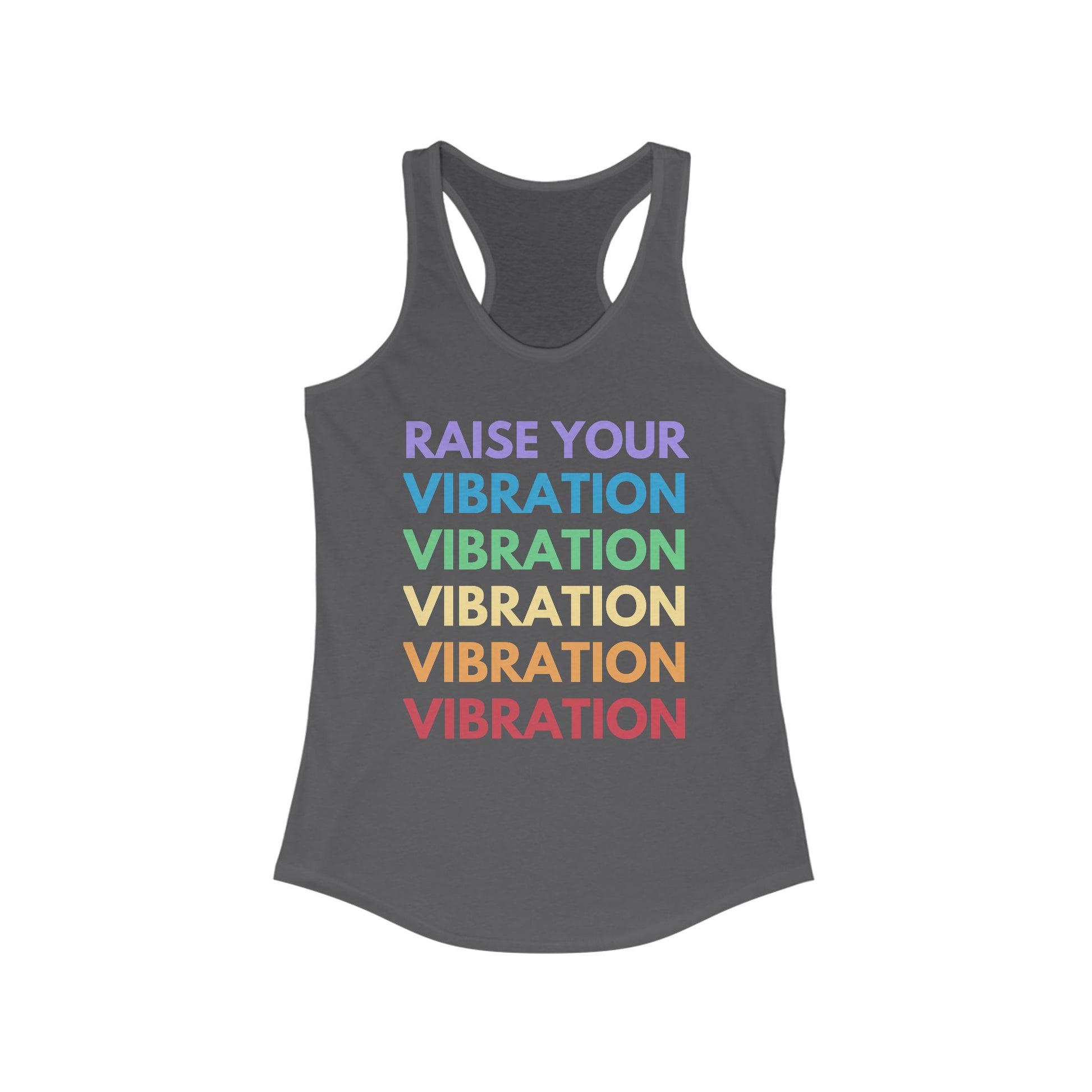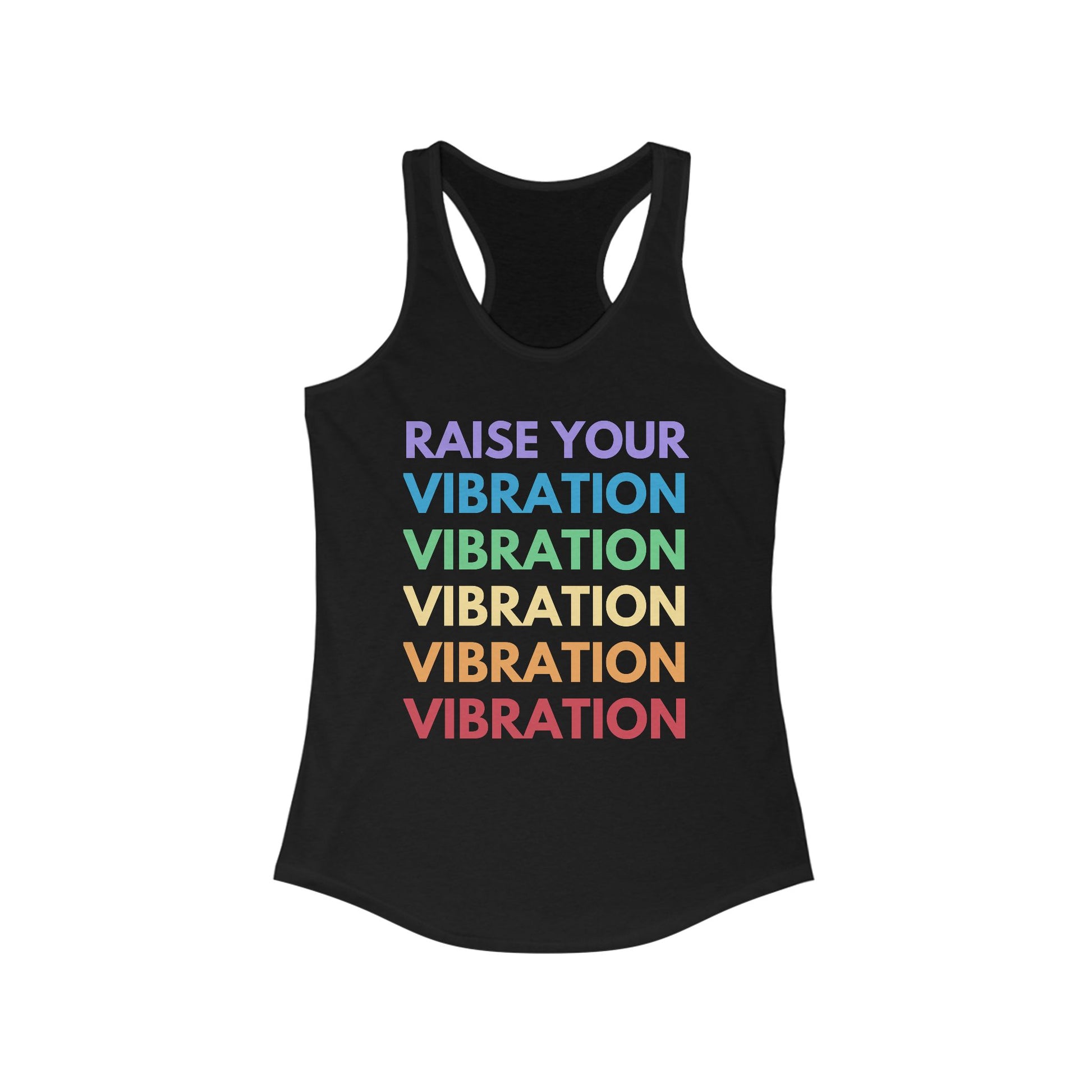 ✨ Raise your vibe and stay cool! Our "Raise Your Vibration" tank top is designed to inspire positivity and high energy with its bold, rainbow-gradient text repeated down the back. Perfect for yoga sessions, workouts, or casual summer days, this tank keeps you feeling empowered and comfortable.