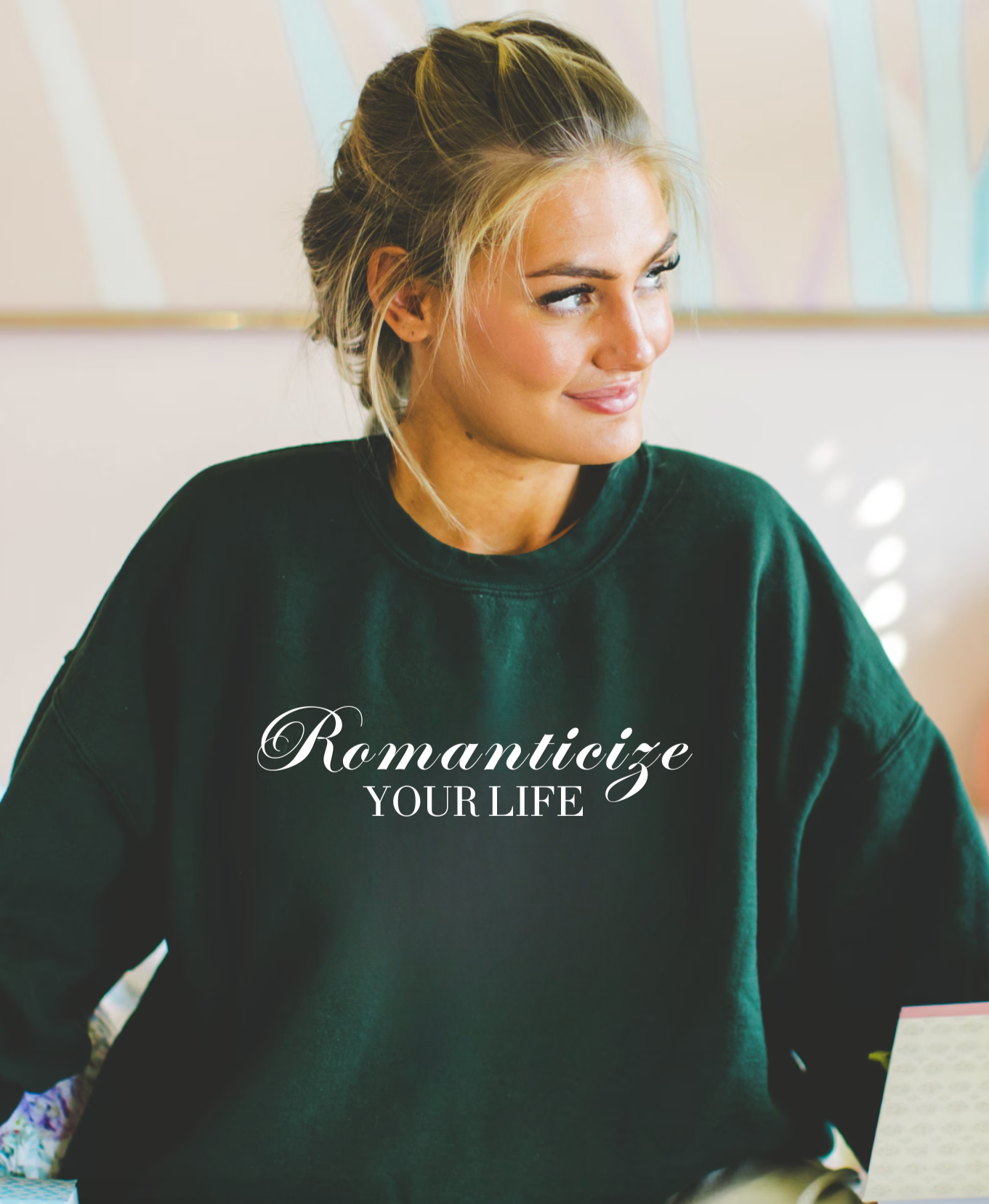 ✨ Add a touch of romance to your daily routine! Our "Romanticize Your Life" crewneck sweatshirt is the perfect reminder to find joy in the little things and live every moment beautifully. Featuring elegant script text on the front, this sweatshirt blends simplicity and inspiration for a timeless, cozy look.
