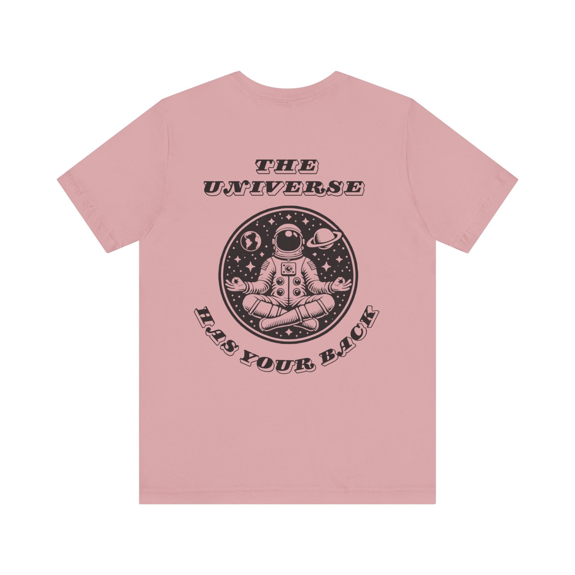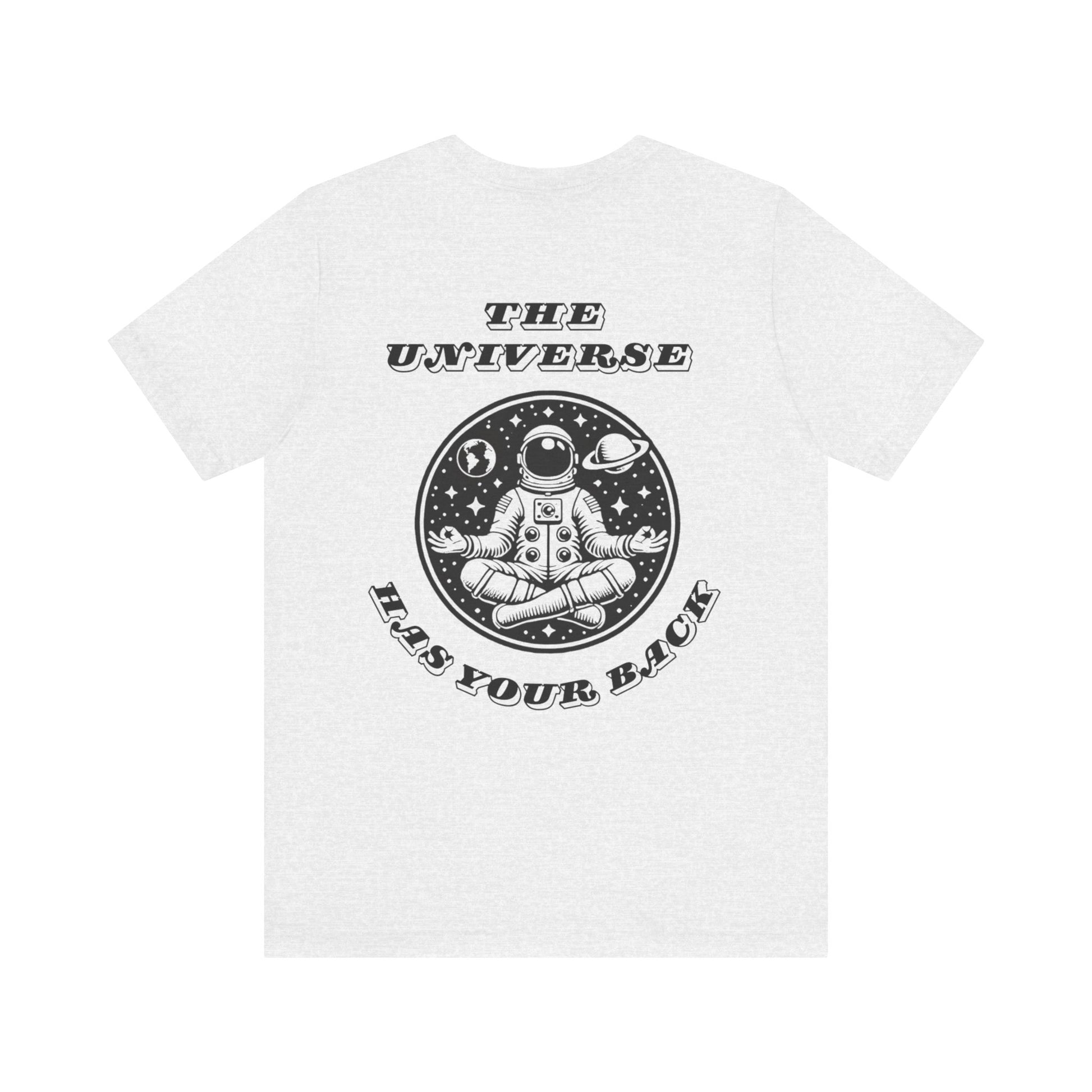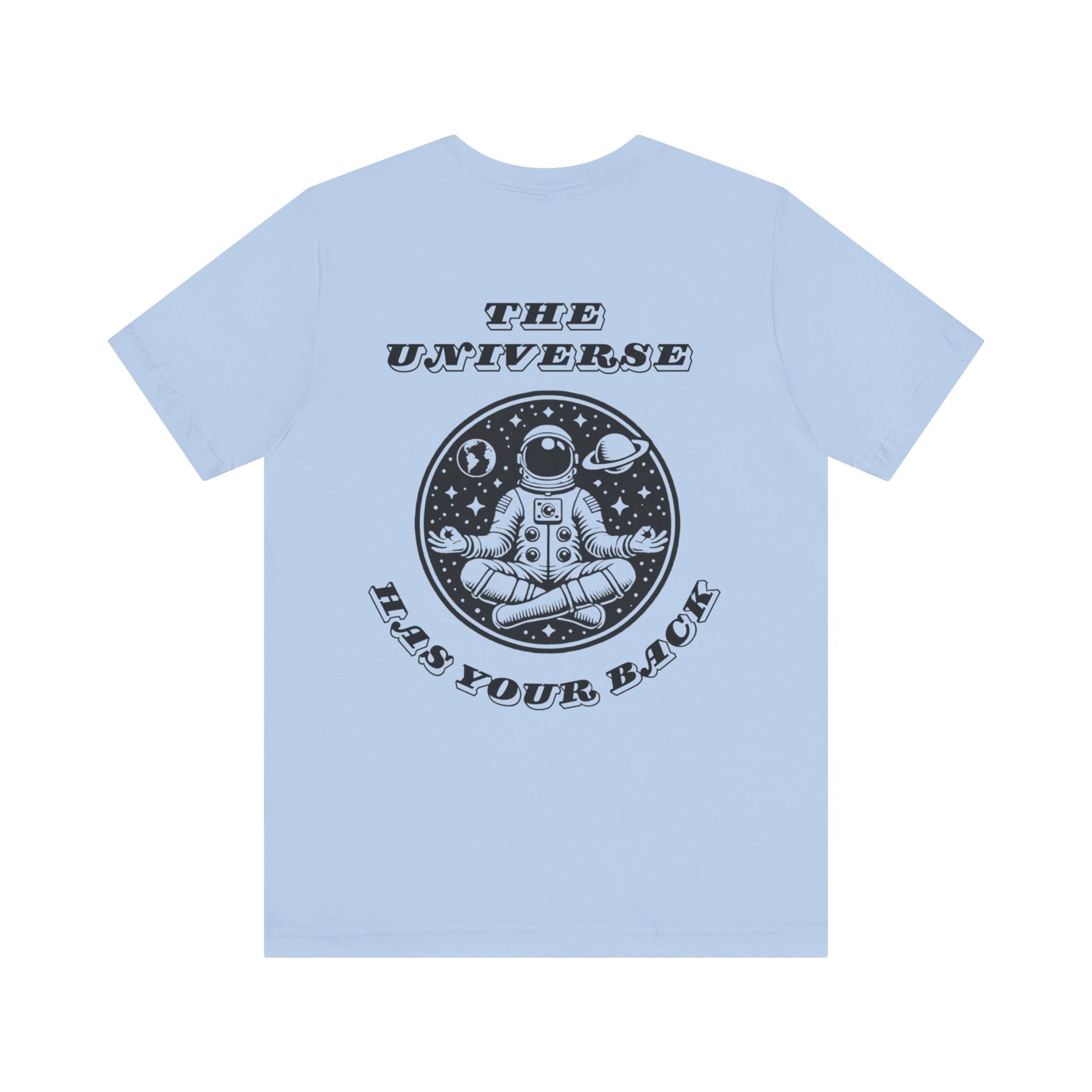 Take a leap into the cosmos with our The Universe Has Your Back T-Shirt! 🚀✨ This unique tee features an inspiring meditating astronaut surrounded by planets, stars, and the reassuring message, “The Universe Has Your Back.” On the front, the minimalist text “Trust The Journey” adds an extra layer of motivation, making it the perfect reminder to embrace life’s adventures with confidence.