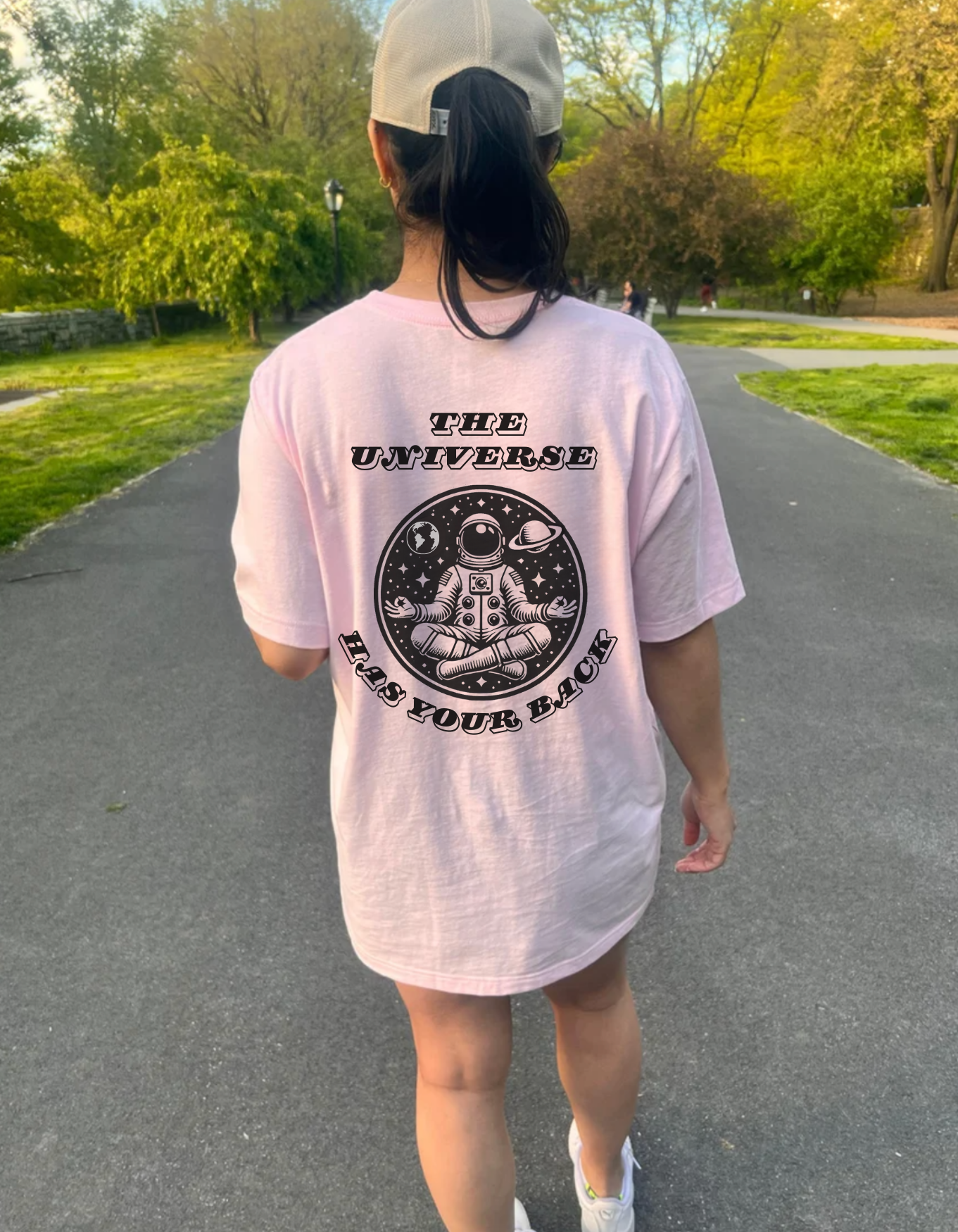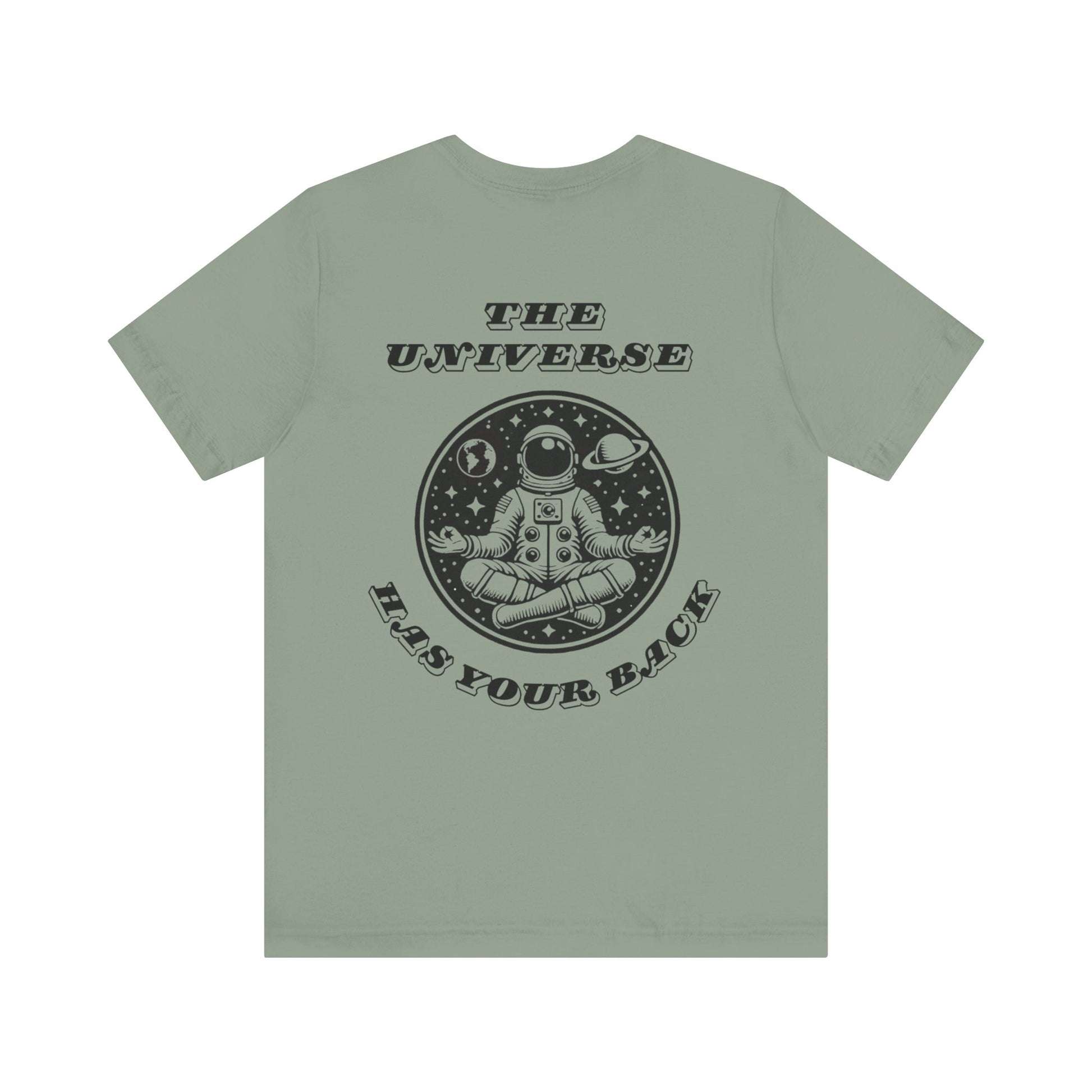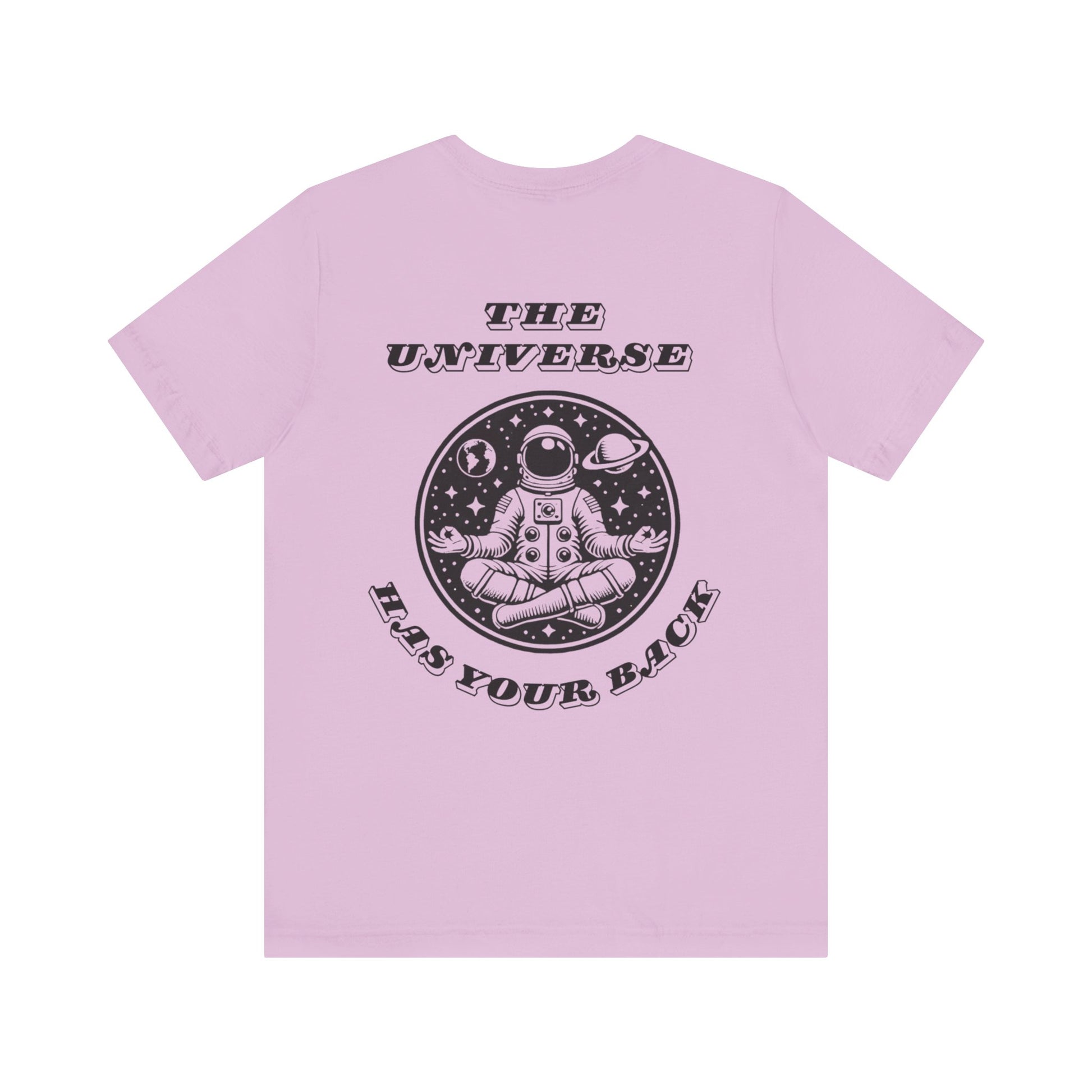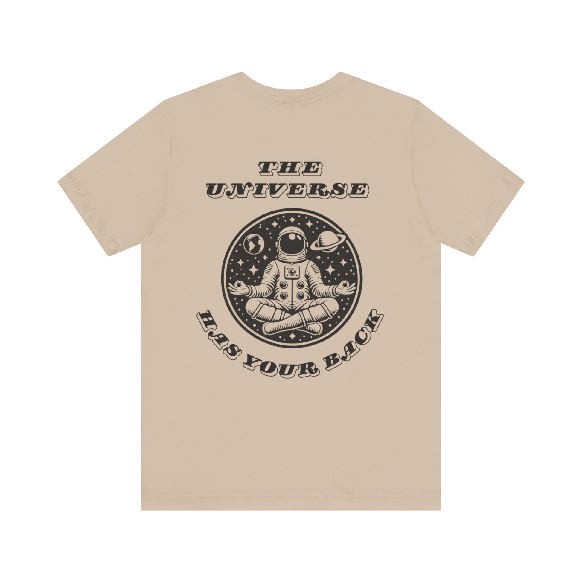 Take a leap into the cosmos with our The Universe Has Your Back T-Shirt! 🚀✨ This unique tee features an inspiring meditating astronaut surrounded by planets, stars, and the reassuring message, “The Universe Has Your Back.” On the front, the minimalist text “Trust The Journey” adds an extra layer of motivation, making it the perfect reminder to embrace life’s adventures with confidence.