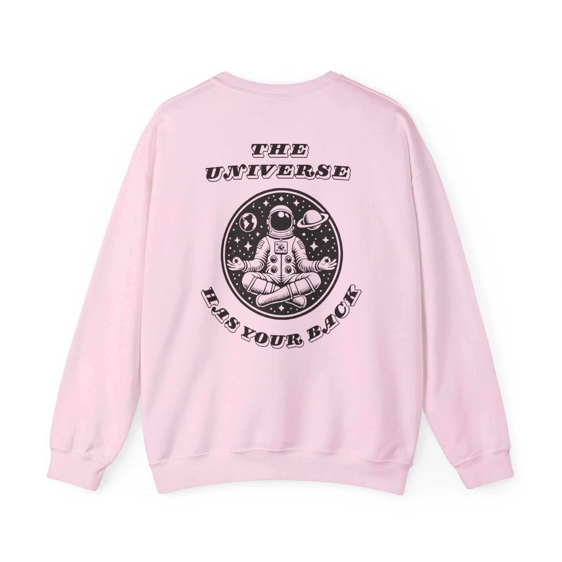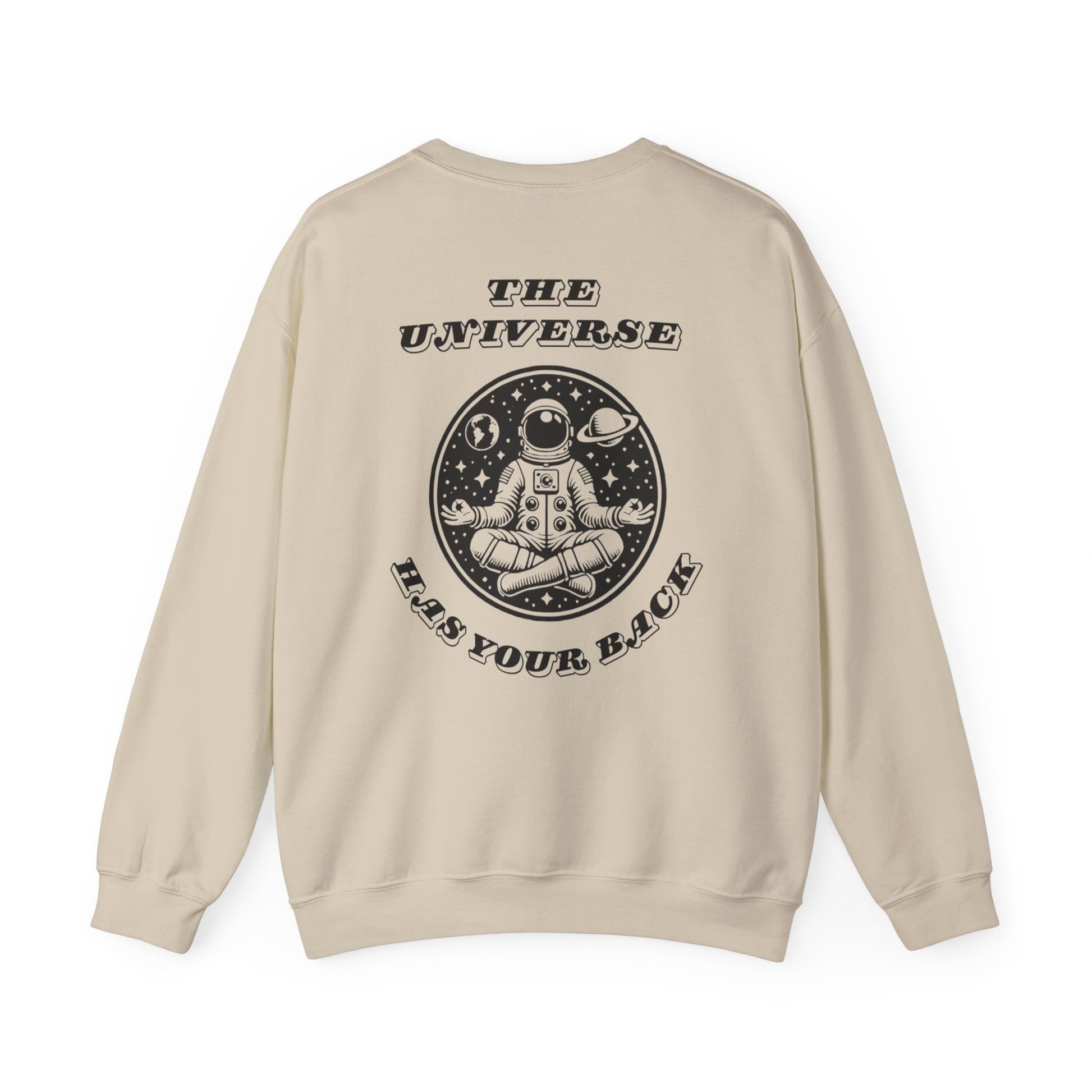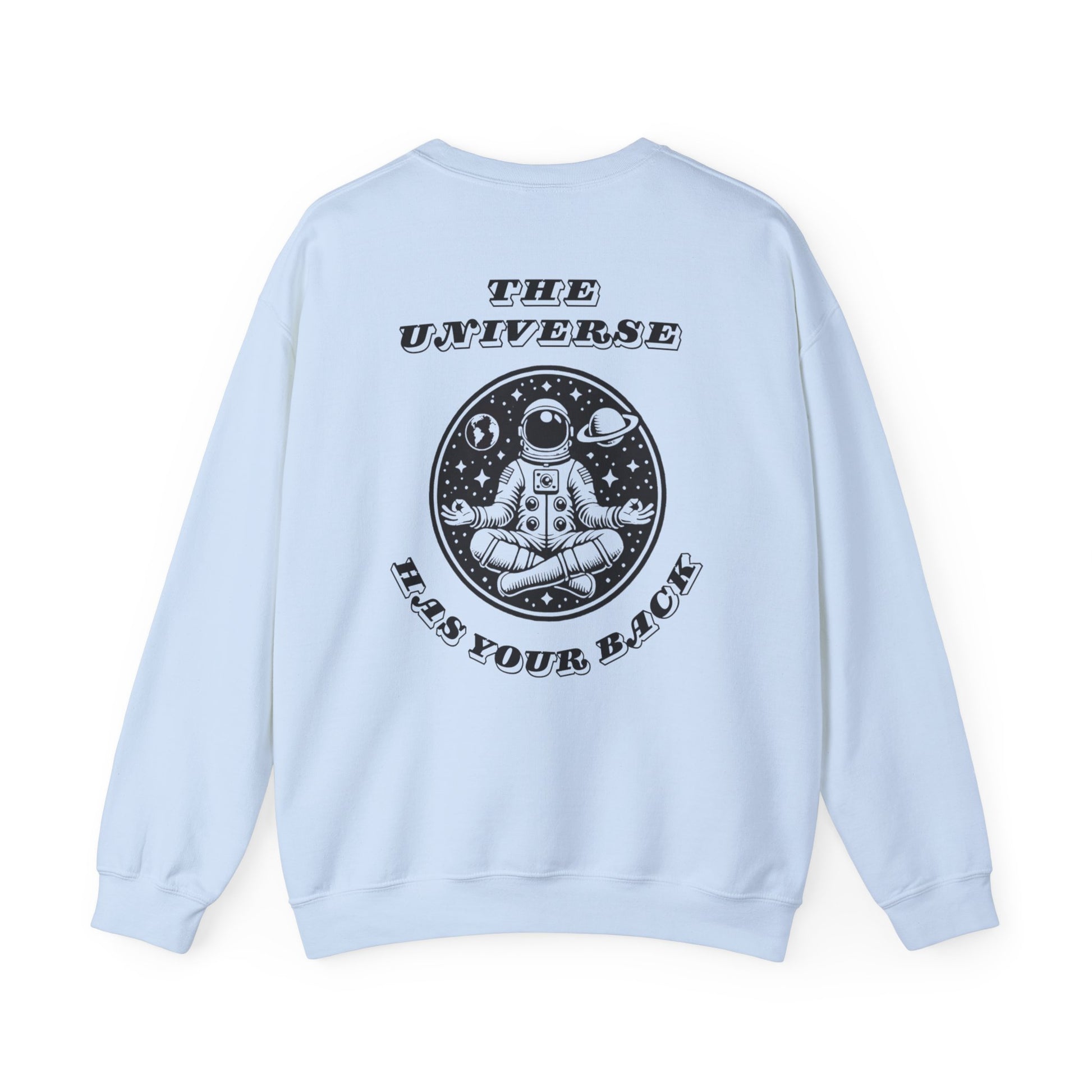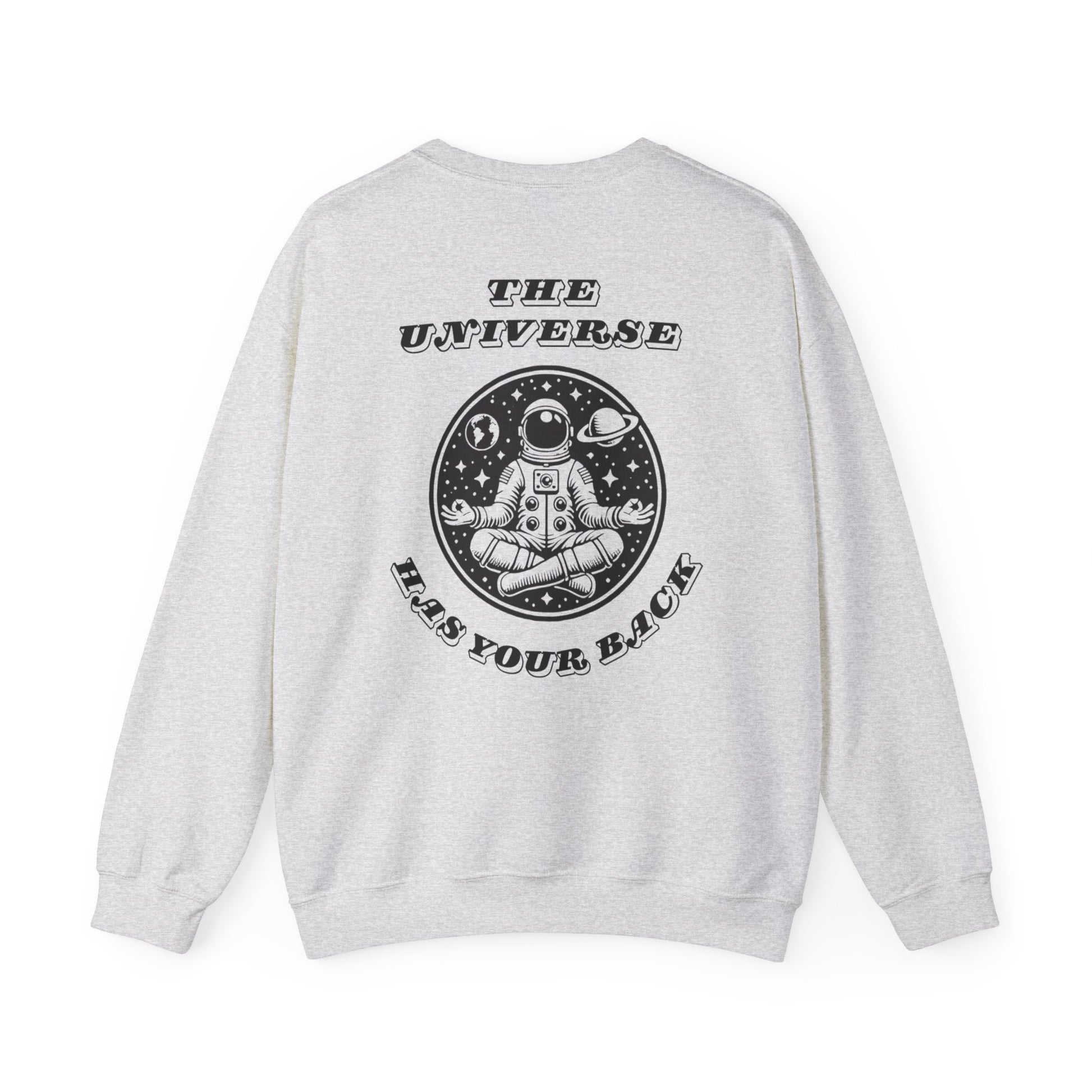 Wrap yourself in celestial comfort with our The Universe Has Your Back Crewneck Sweatshirt! 🚀✨ Featuring a bold, meditating astronaut surrounded by planets, stars, and the empowering message, “The Universe Has Your Back,” this sweatshirt is the ultimate reminder to trust the process and embrace life’s journey. The front adds an extra touch of inspiration with the minimalist phrase “Trust The Journey”.