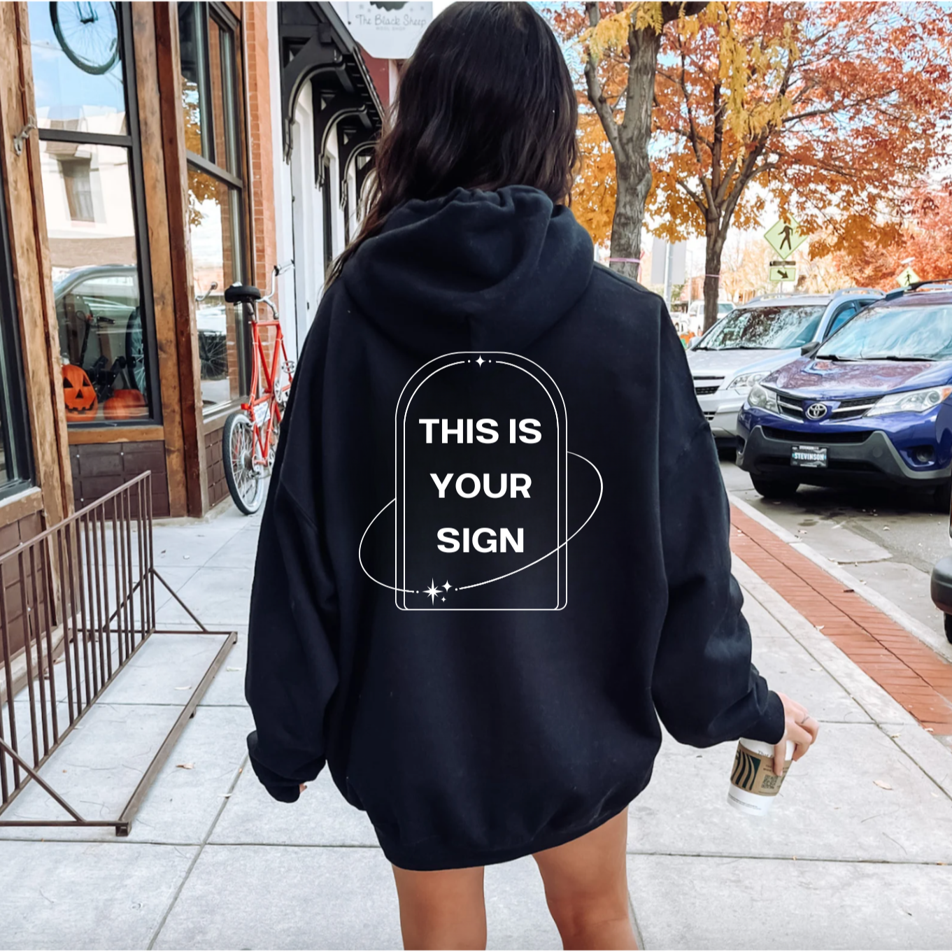 Stop searching—this is your sign to grab the coziest hoodie with the boldest message! Featuring sleek typography framed by a celestial-inspired design with orbiting lines and sparkling stars, this hoodie is a stylish and uplifting way to remind yourself (and everyone behind you!) to follow their intuition. Warm, comfy, and meaningful, it’s the ultimate go-to for anyone ready to embrace their journey. 🌟