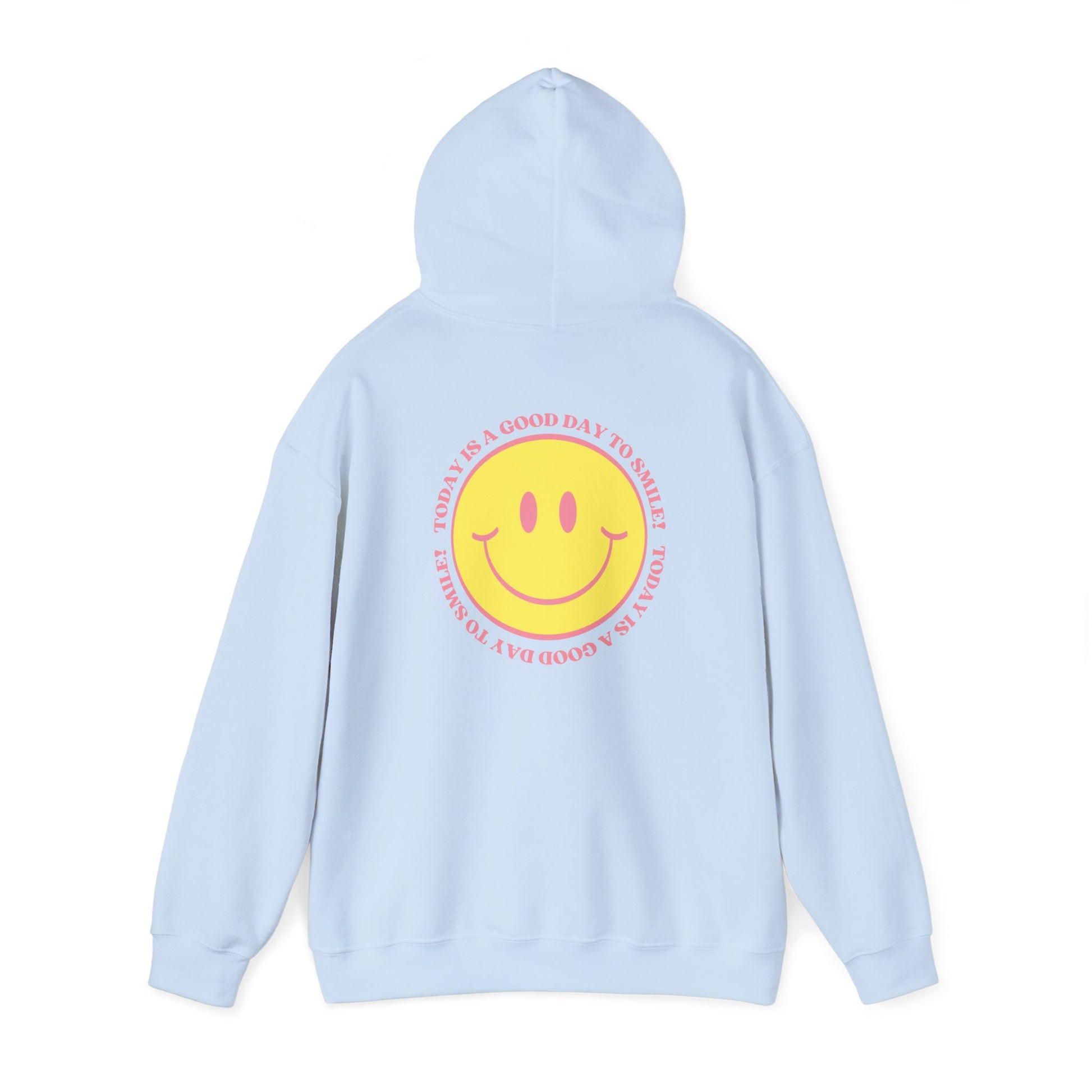 😊 Spread positivity and brighten everyone’s day with our ‘Today is a Good Day to Smile’ hoodie! Featuring a cheerful yellow smiley face surrounded by the uplifting phrase "Today is a Good Day to Smile," this hoodie radiates good vibes. With a clean, minimalist front and a bold, happy design on the back, it’s perfect for staying cozy while spreading joy wherever you go.