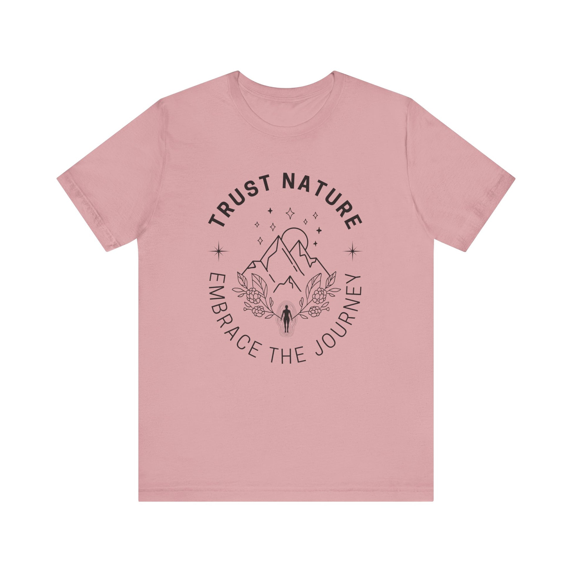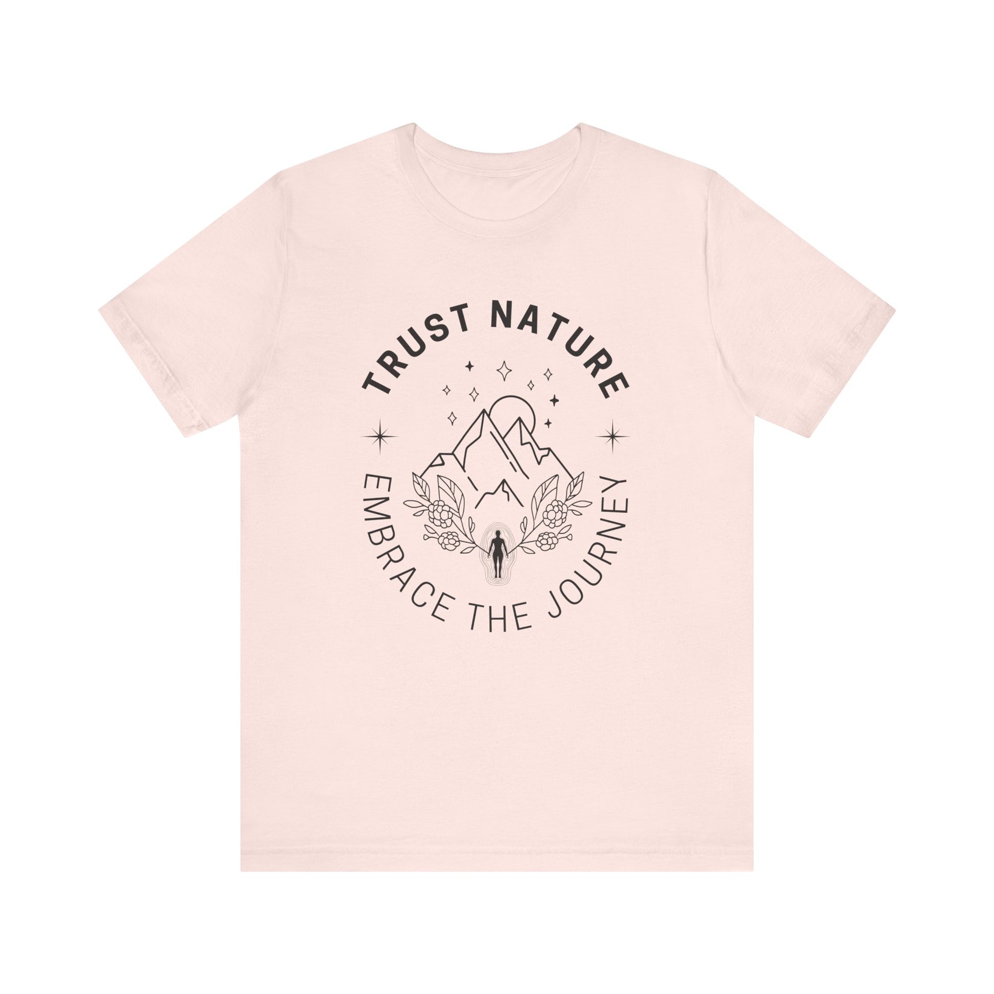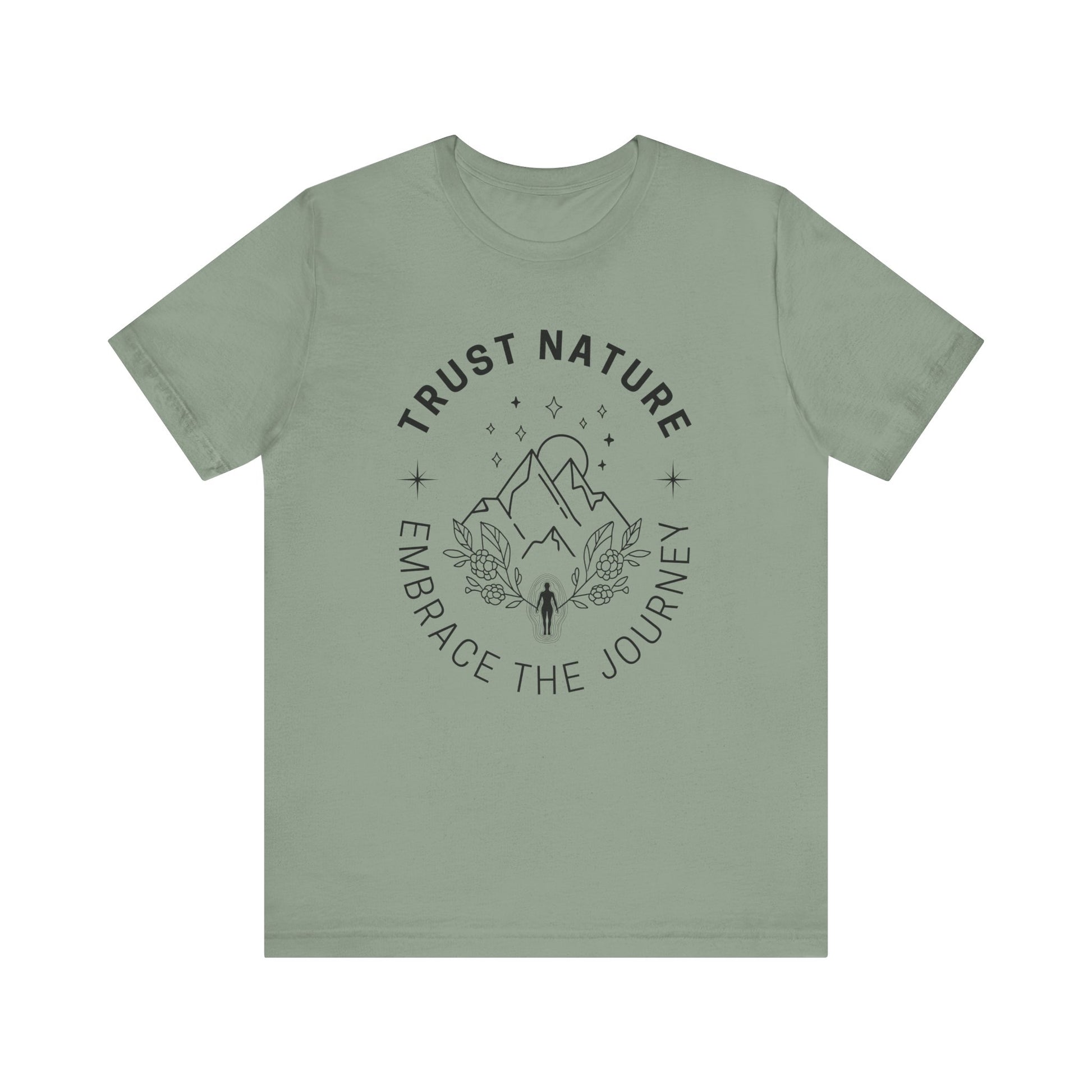 Step into the great outdoors (or bring the spirit of it with you) in our Trust Nature – Embrace the Journey t-shirt. Featuring an elegant design with a mountain peak, botanical accents, and a lone figure walking toward adventure, this shirt captures the beauty of nature and the essence of personal growth. Perfect for those who love to explore, reflect, and stay grounded in life’s journey.