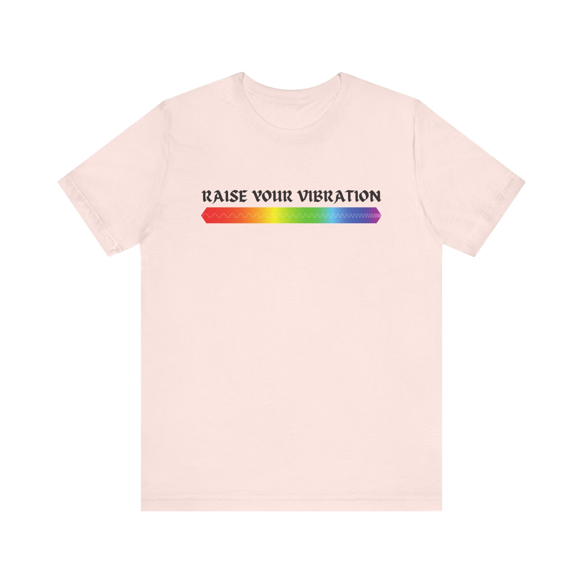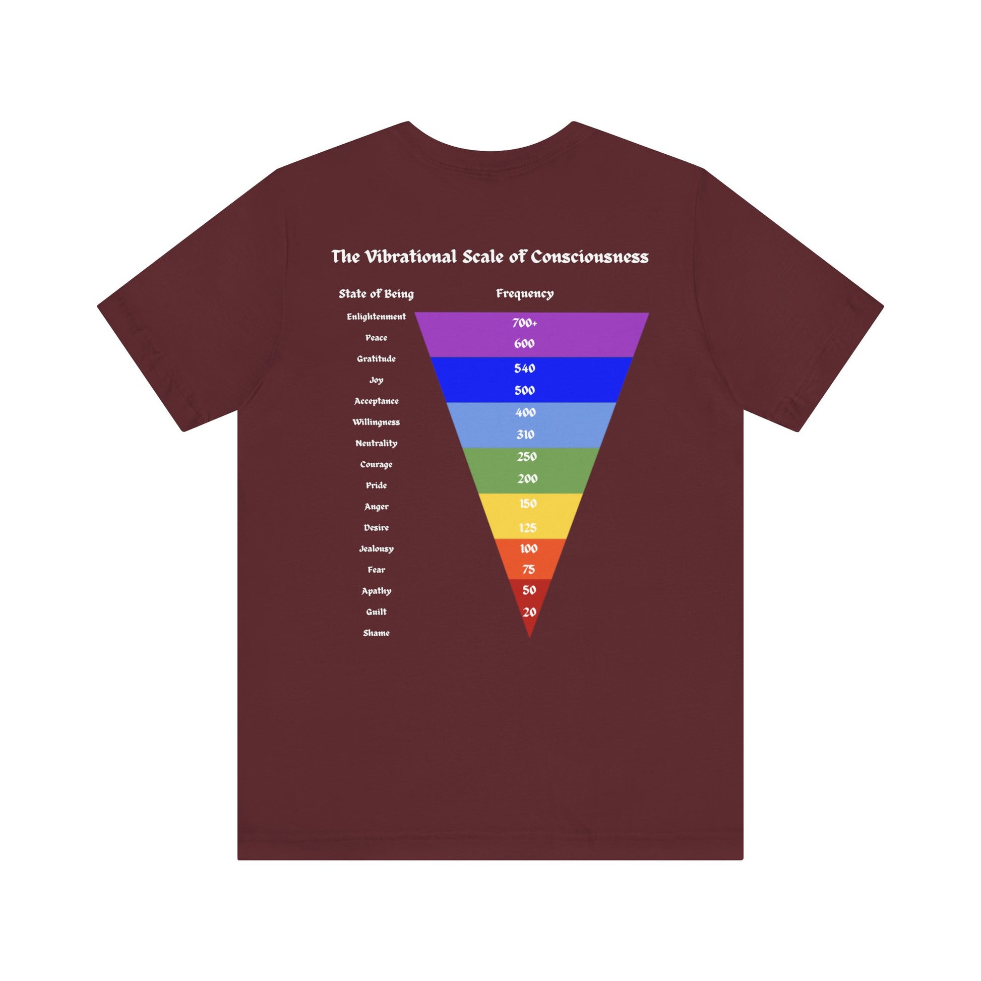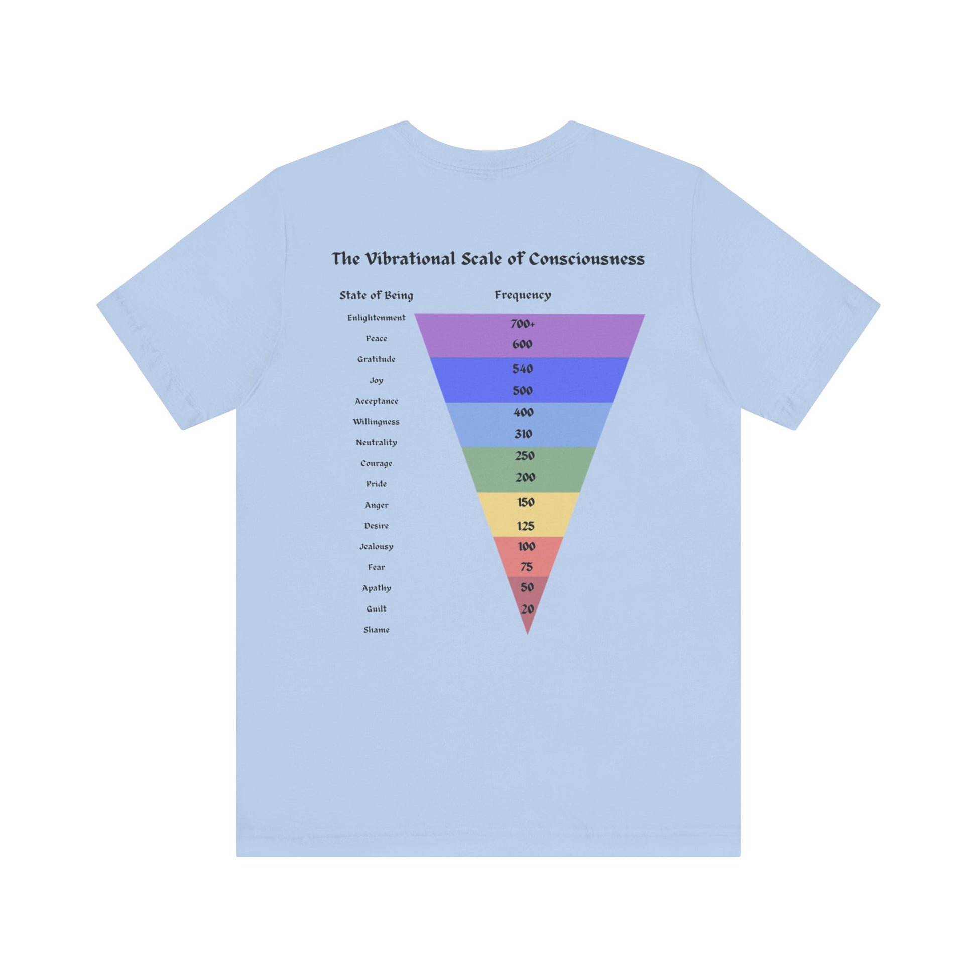 🌈 Elevate your energy and inspire others! This Raise Your Vibration t-shirt combines style with a powerful message. The front design features a sleek "Raise Your Vibration" text with a colorful frequency bar, while the back showcases the Vibrational Scale of Consciousness, reminding you to align with higher frequencies like love, peace, and joy. Whether you're working on your mindset or sharing your positivity with the world, this tee is a wearable affirmation.